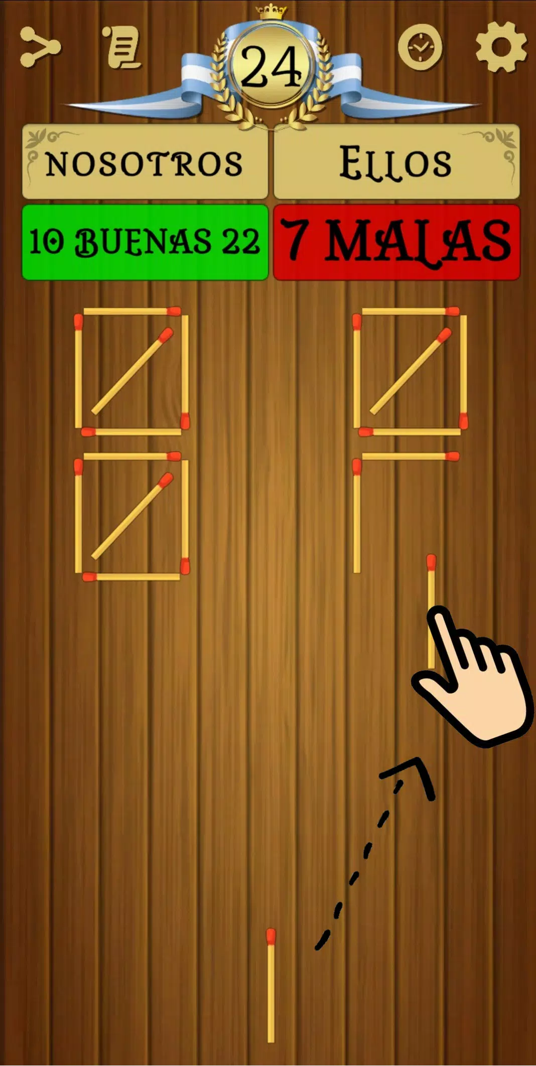 – 您可以拖动火柴或使用按钮