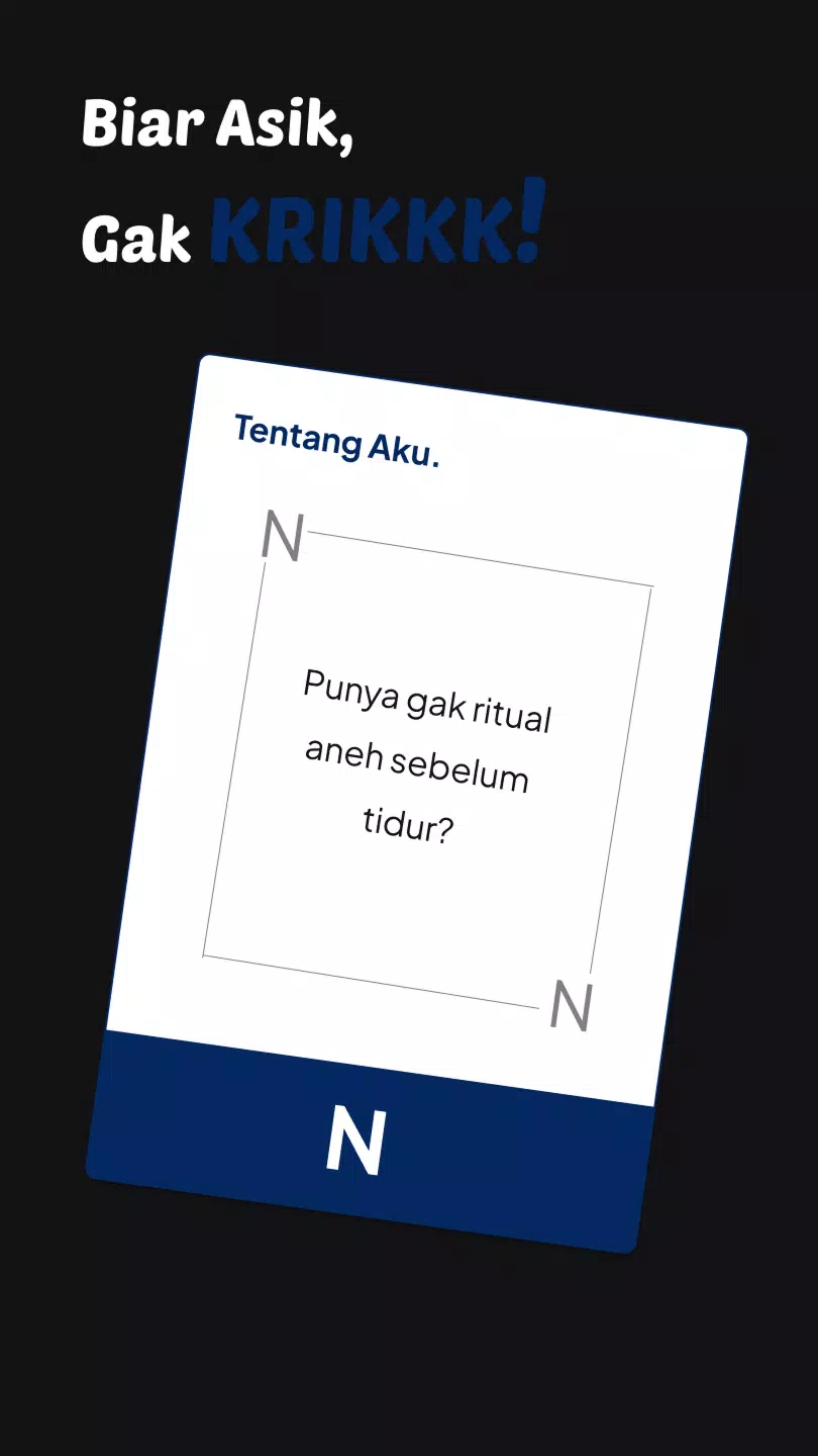 一款简单易上手的卡牌游戏,瞬间让你的聚会时光更加精彩!只需掷出一张牌,回答问题,对话自然流畅,气氛也随之活跃起来。