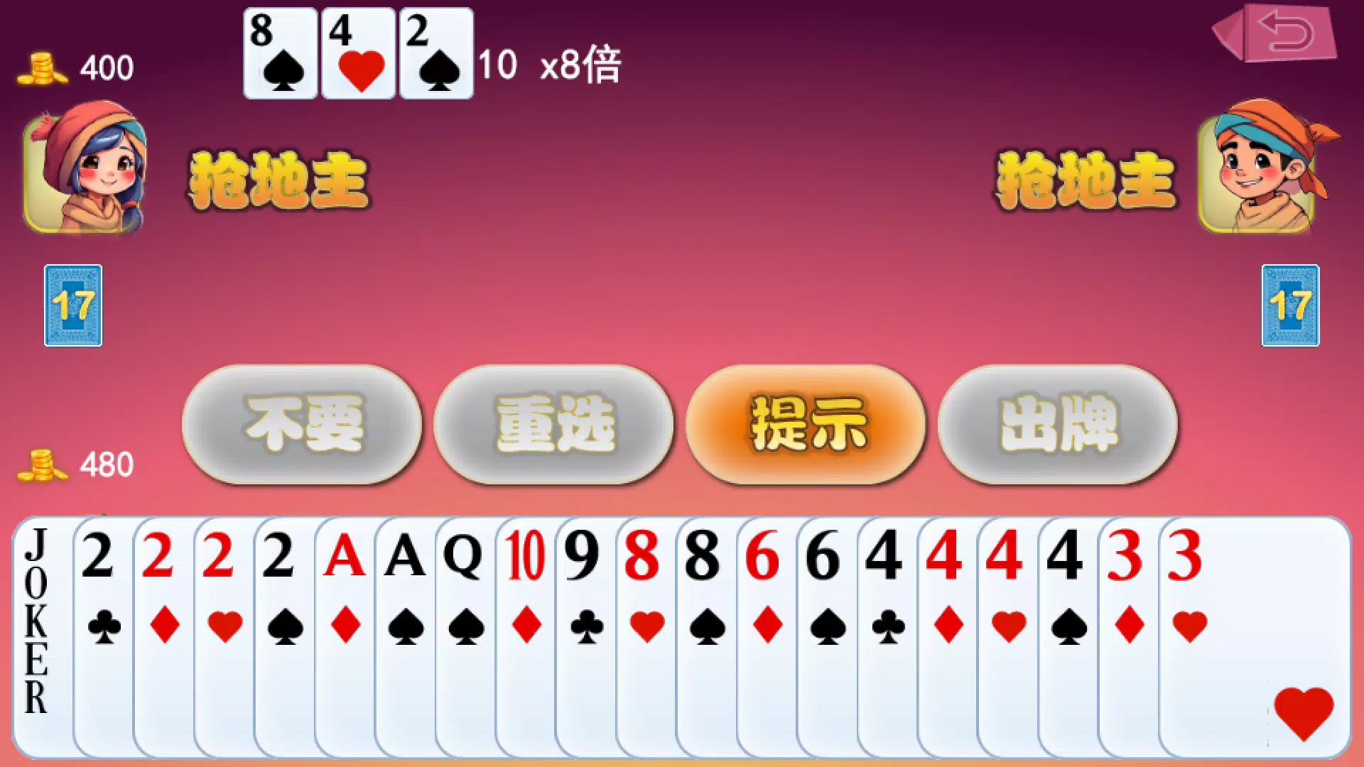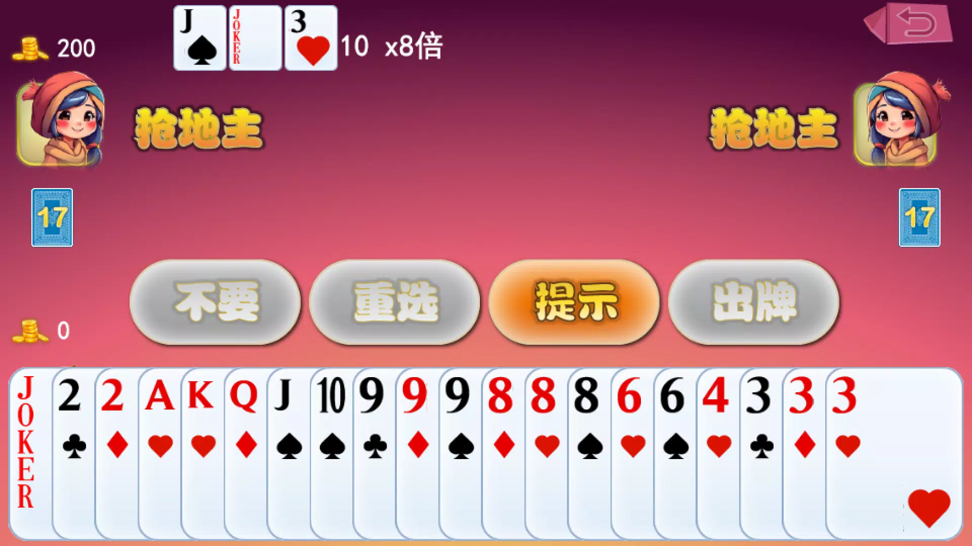 地铁主题的扑克牌游戏,游戏参考非常流行的斗地主玩法地铁的场景,模拟现实生活在地铁站偶遇一些玩家进行开局,
