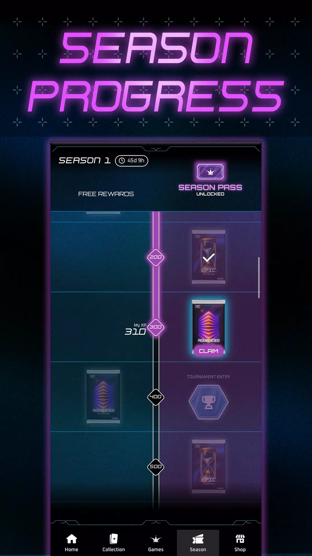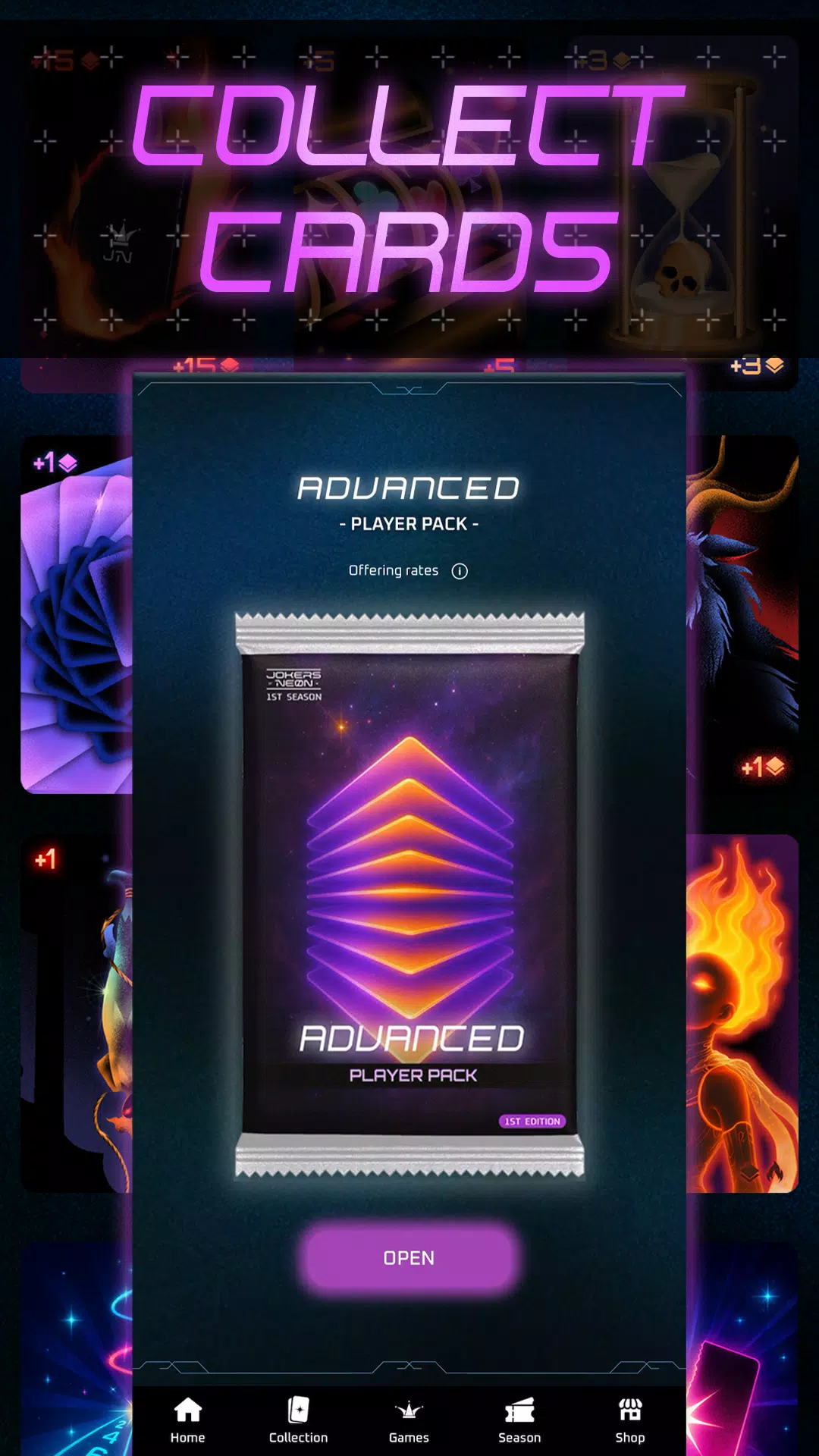 打开卡包,赢取奖励,升级