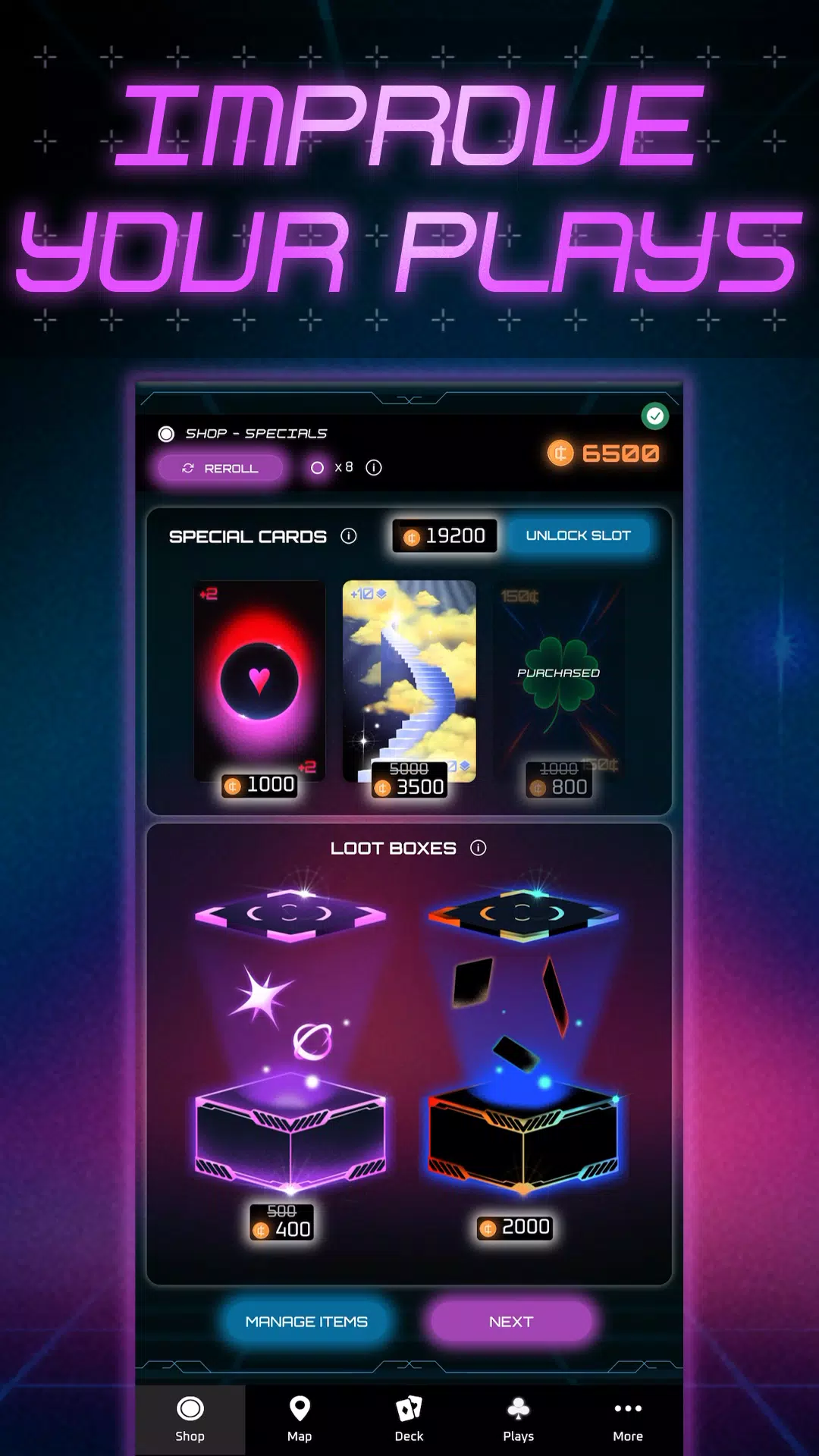 从一副简单的扑克牌开始,逐步构建你的策略。解锁强力卡牌,叠加卡牌修改器,并创造狂野组合,闯过挑战性关卡,攀升排行榜。
