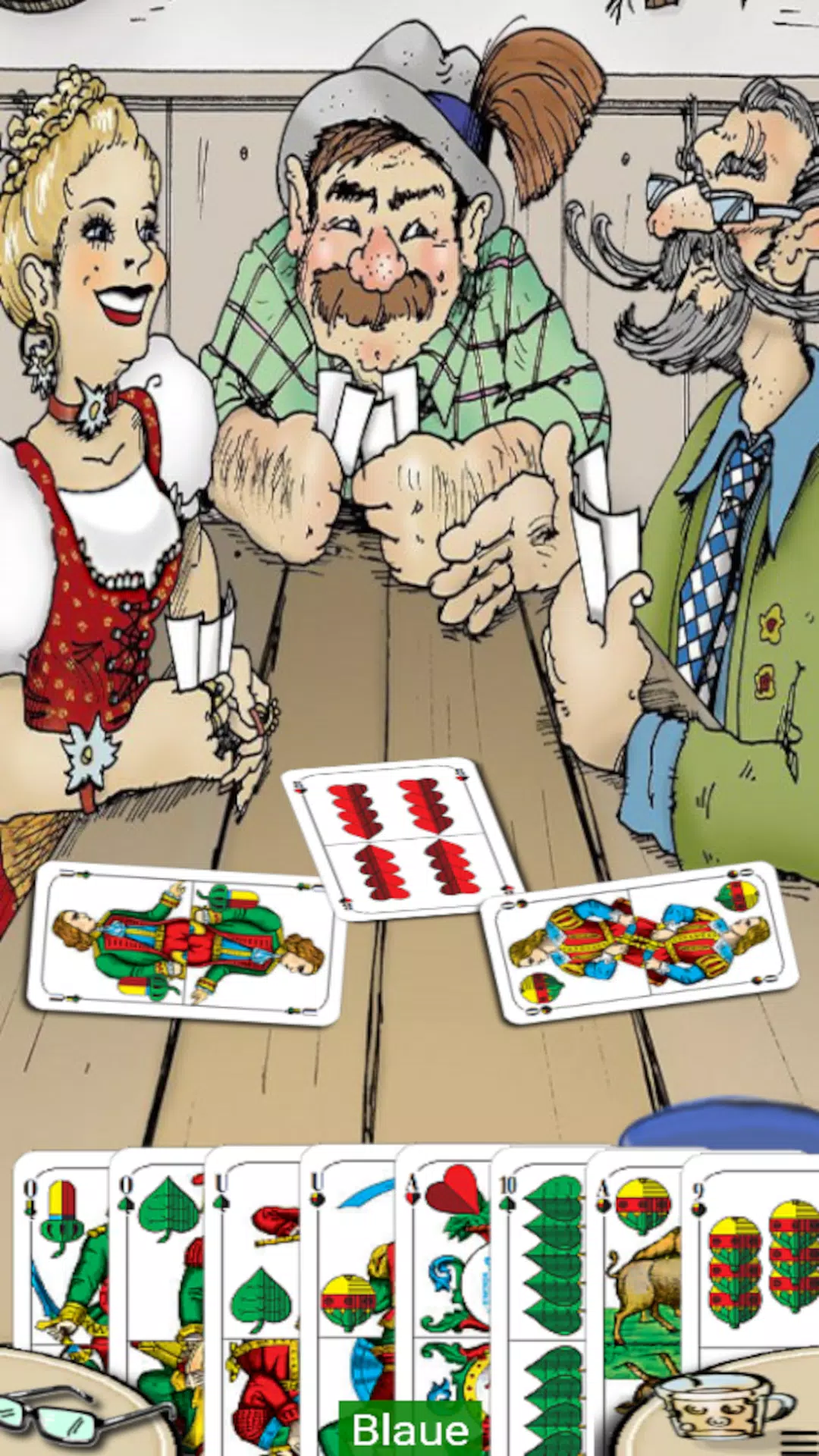 Schafkopf,巴伐利亚经典纸牌游戏!立即播放并在免费应用程序上学习 Schafkopf,就像在常客餐桌上一样,声音输出优美。
