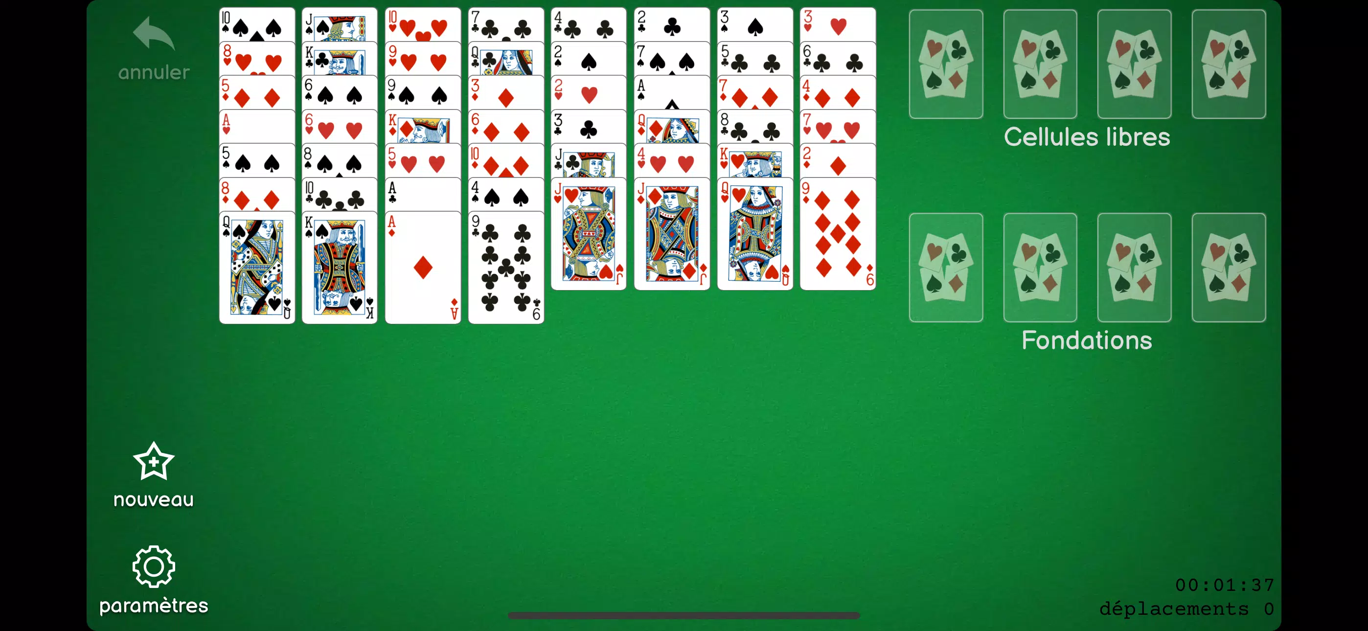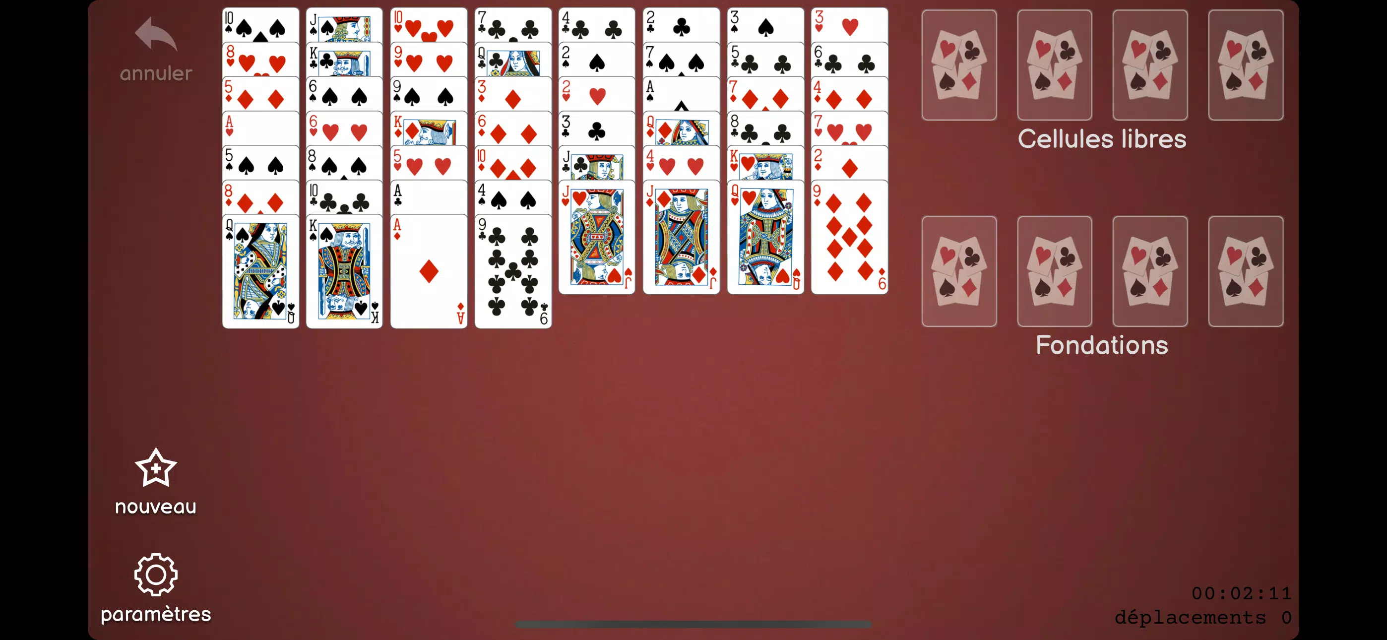 2. Use the 4 free cells wisely to temporarily store cards and unlock moves