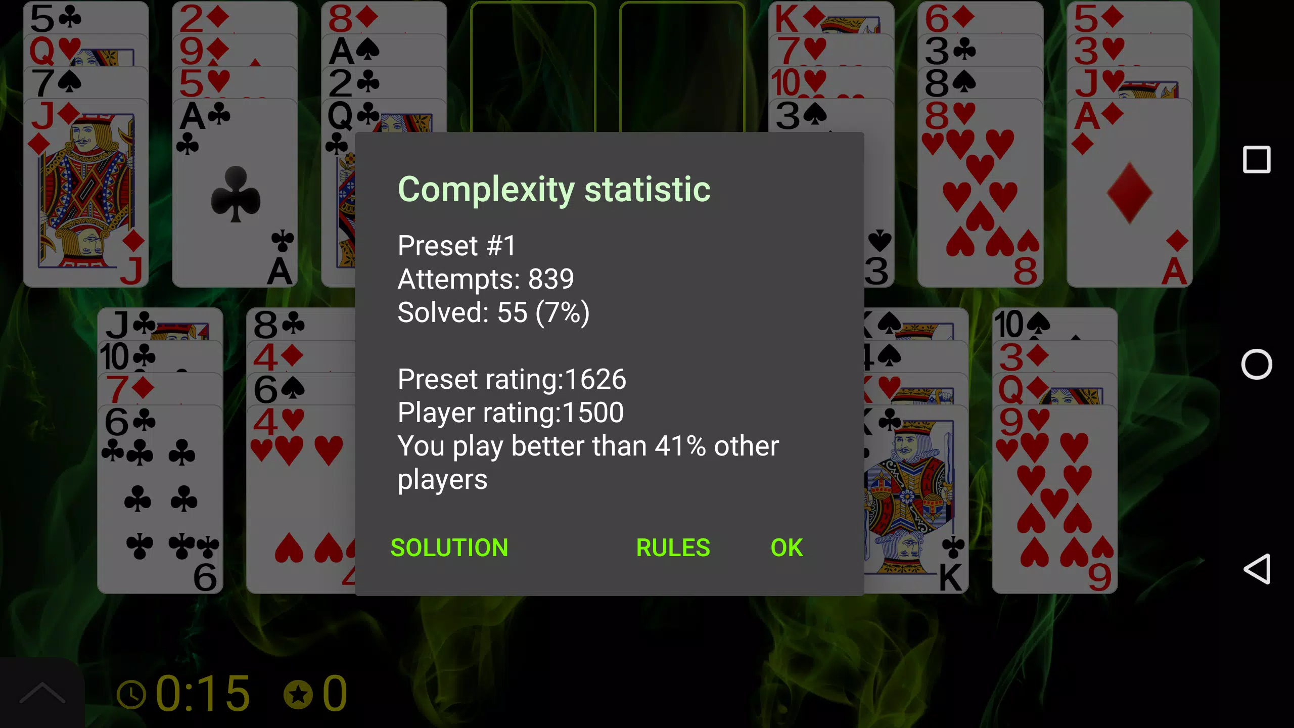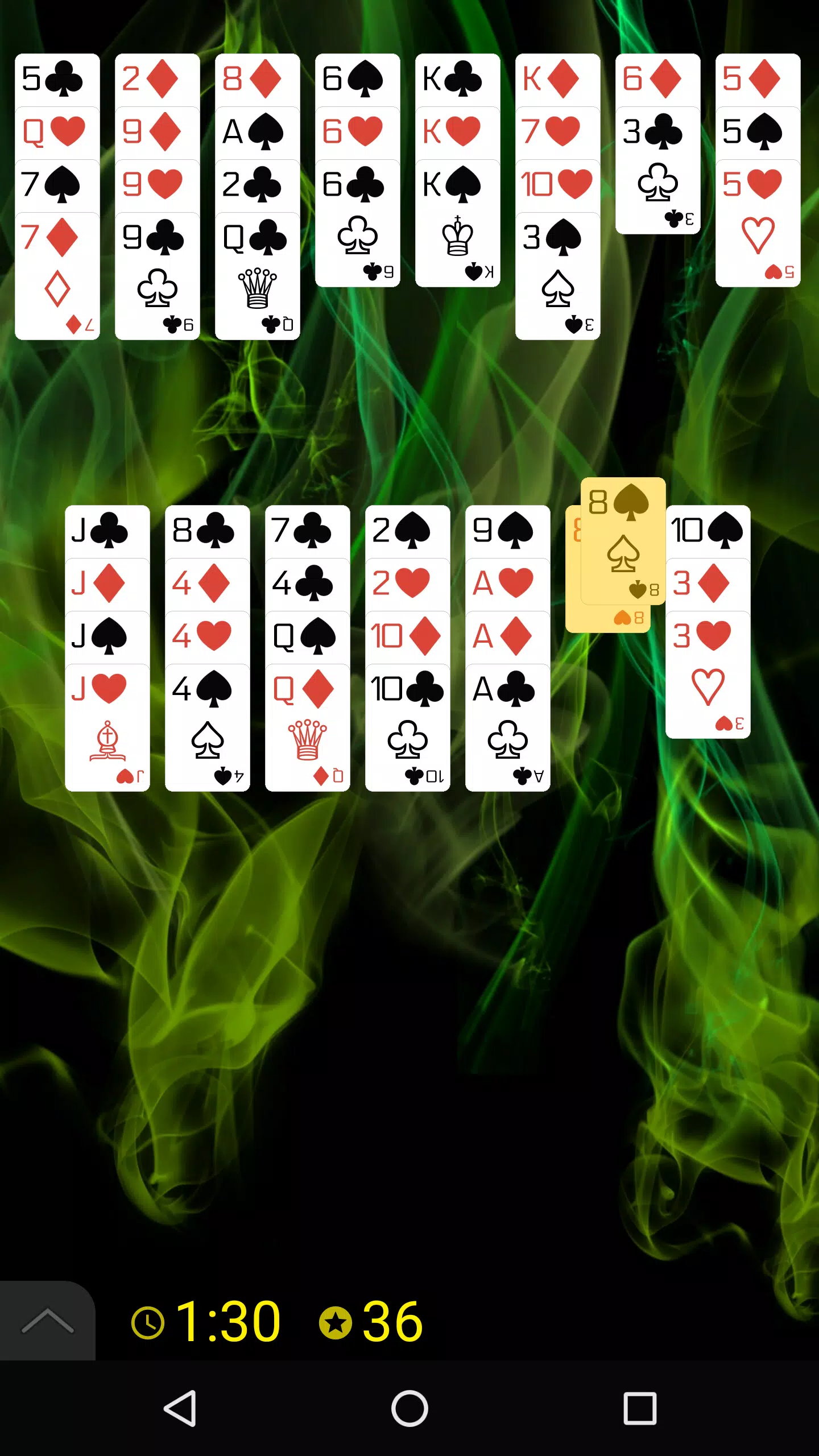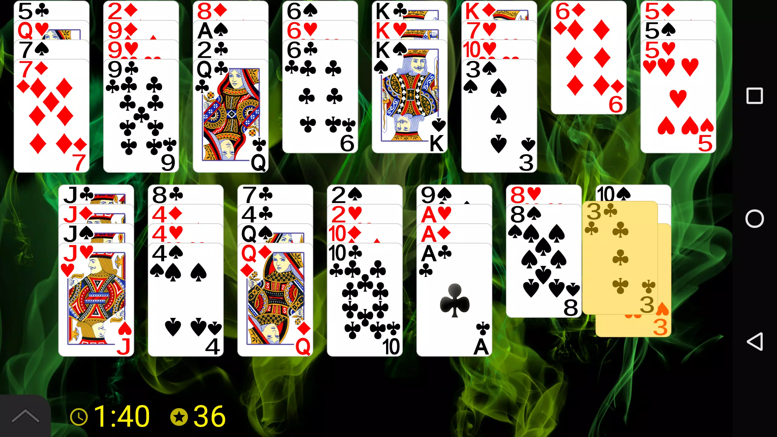 规则:组成 13 叠牌,每叠 4 张同点数的牌。你可以将牌放在空列,或放在同点数的牌上。每叠最多可放置 4 张牌。