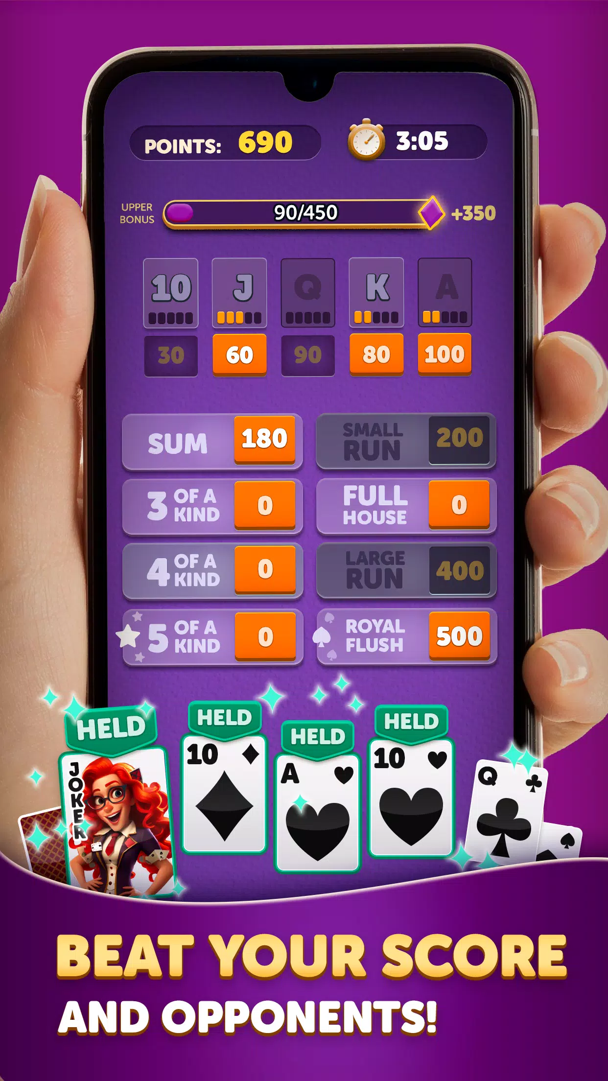– 将 Yatzy 的刺激与卡牌策略相结合。
