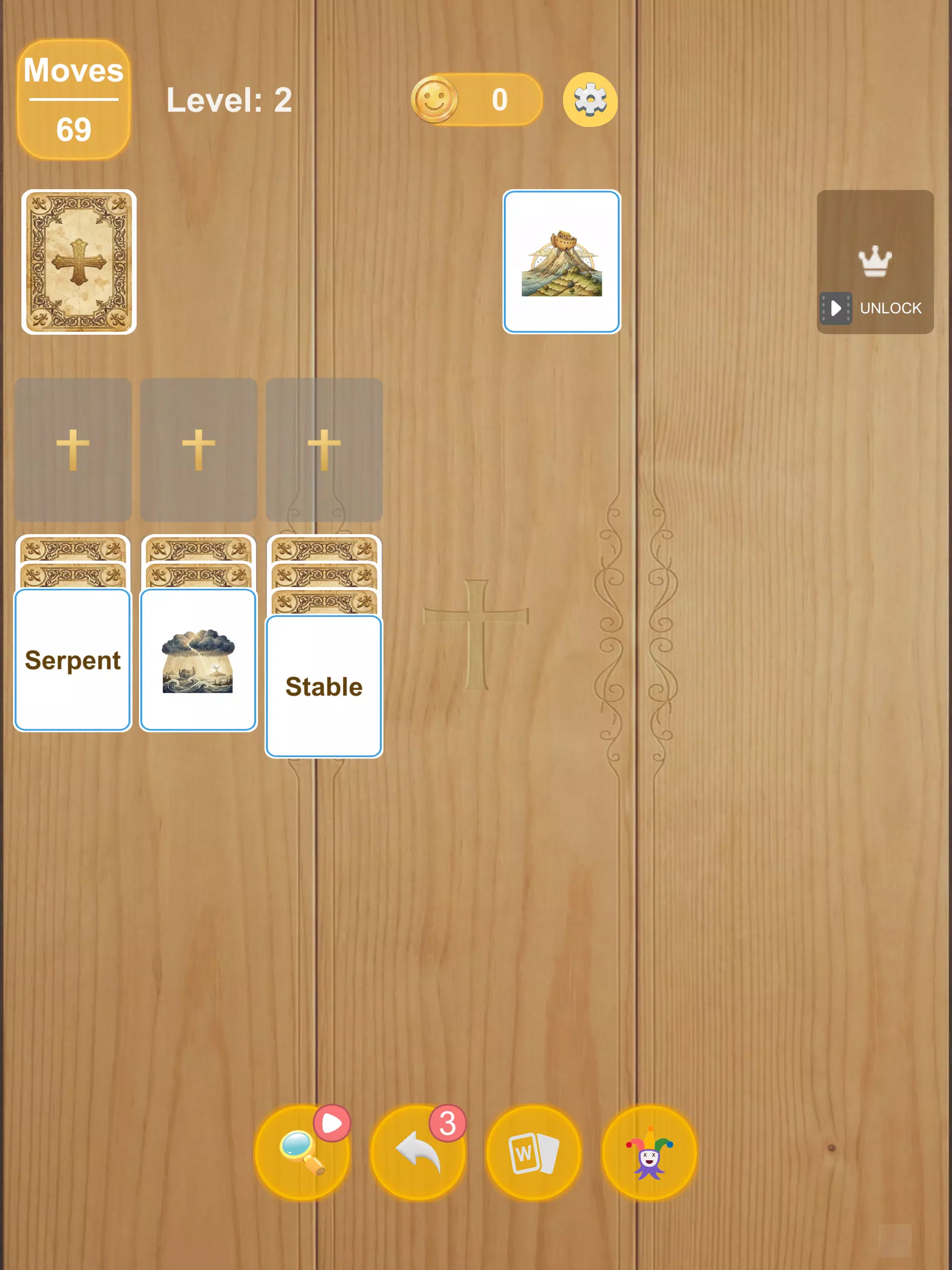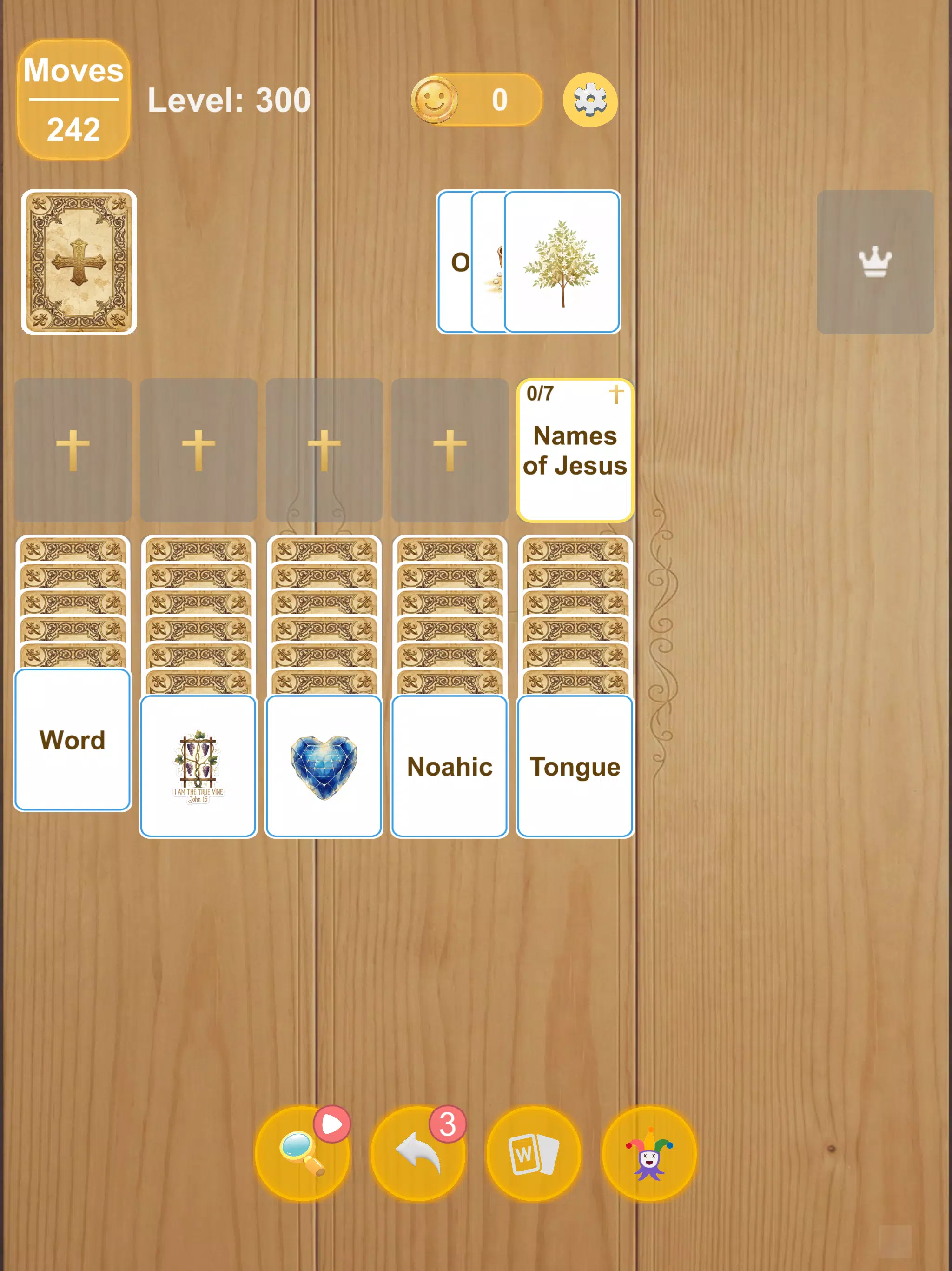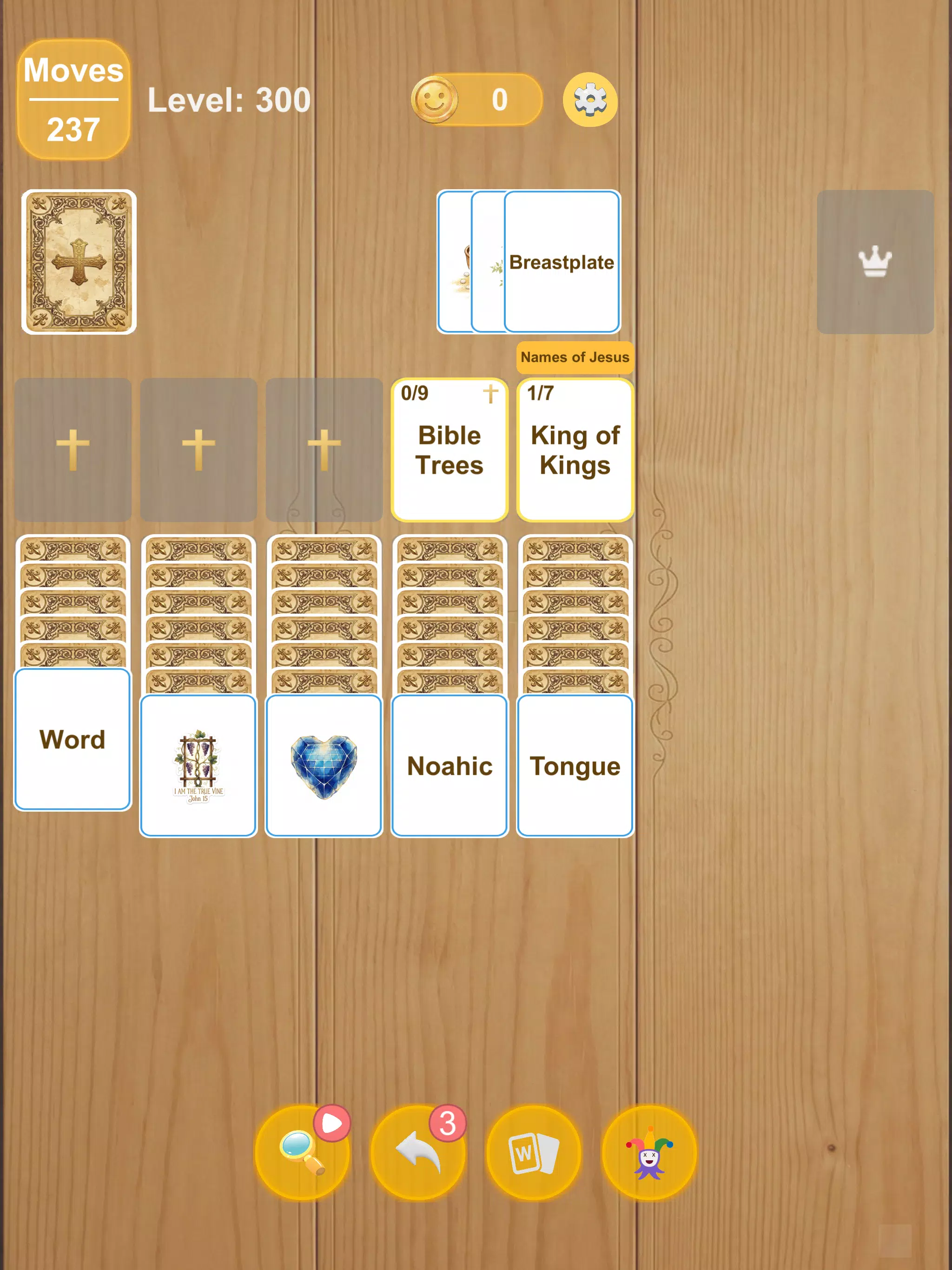 圣经单词纸牌游戏将纸牌游戏的永恒乐趣与圣经知识问答和单词匹配玩法完美结合。拖拽单词卡片并将其匹配到正确的圣经类别中,即可清除棋盘上的单词,并闯过 190 个精心设计的关卡。