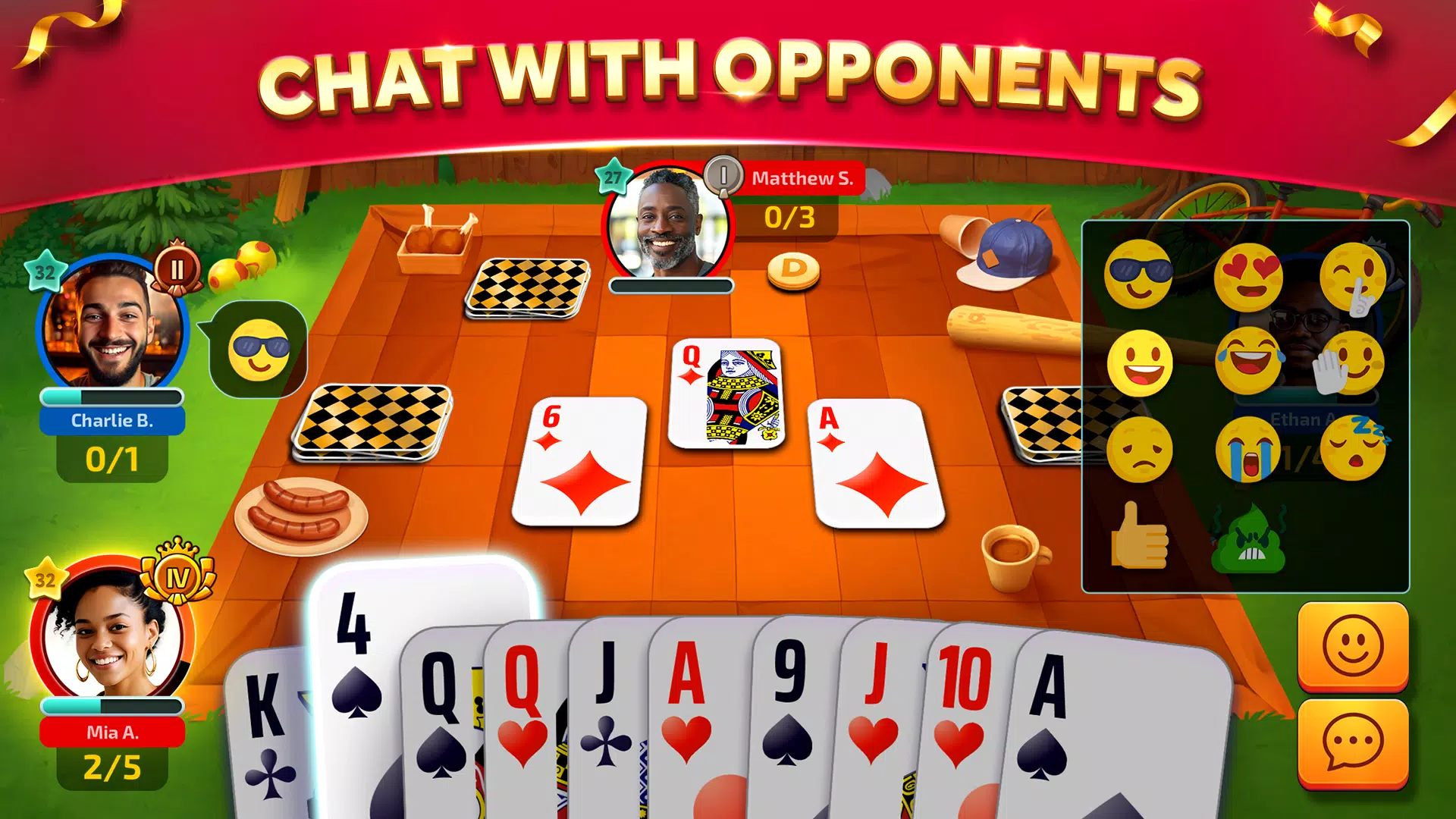 与其他经典纸牌游戏一样,在黑桃经典纸牌游戏中,比赛的结果取决于玩家的技能和策略,因此我们每一轮吃墩纸牌游戏都独具特色,令人兴奋不已。在这些经典纸牌游戏中,黑桃是主要花色,最大的牌是黑桃A。没有玩过黑桃牌类游戏?没问题!只需按照在线黑桃牌类游戏中的提示,就能快速掌握规则!磨练你的技能,制定你的制胜策略,与好友一起在黑桃牌类游戏中成为传奇——这是一款吃墩牌类游戏。免费下载离线黑桃牌类游戏,沉浸在黑桃牌类免费游戏的宁静氛围中!