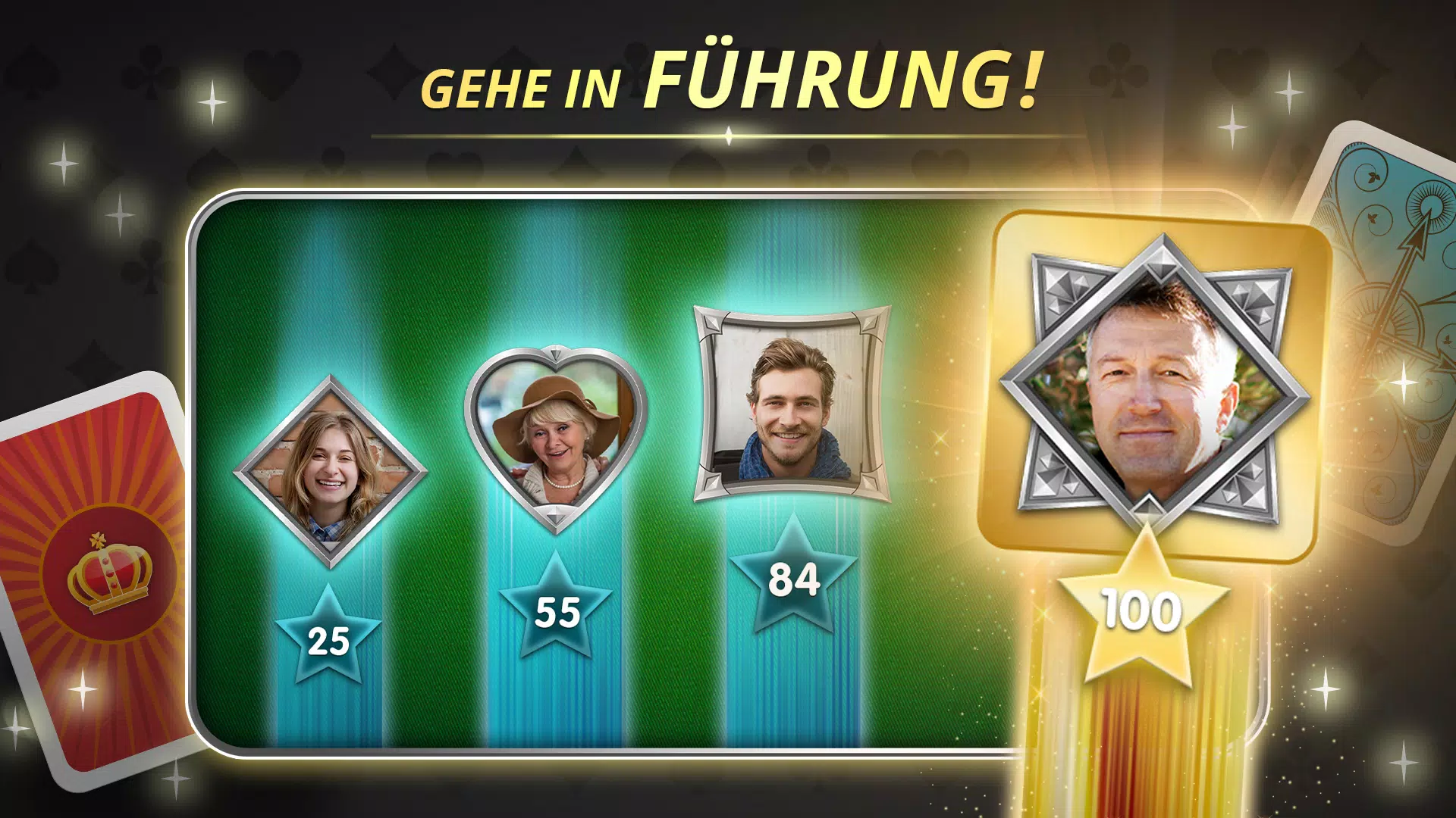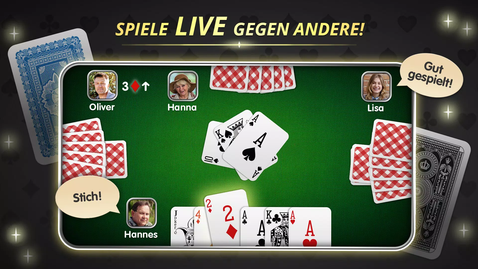 在 Whist,你们四个人坐在牌桌旁,两人一组。你拿到牌了,王牌就决定了,我们走吧!与您的游戏伙伴一起,您尝试收集尽可能多的技巧。为此,你们中的一个人必须始终打出最强的牌。因为从第7招开始就有积分了。你需要这些积分才能最终获胜!