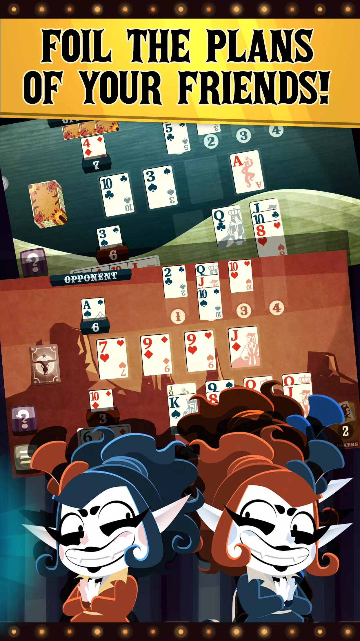 畅玩 North Sky Games 全新推出的 Spite & Malice 游戏(又名 Skip-Bo 和 Cat and Mouse)。抢先出完所有卡牌,赢得比赛!Spite & Malice 拥有一系列独特的游戏变体,包括“国王”和“苦难”,以及 4 个极具挑战性的难度等级,为您带来无与伦比的游戏体验!