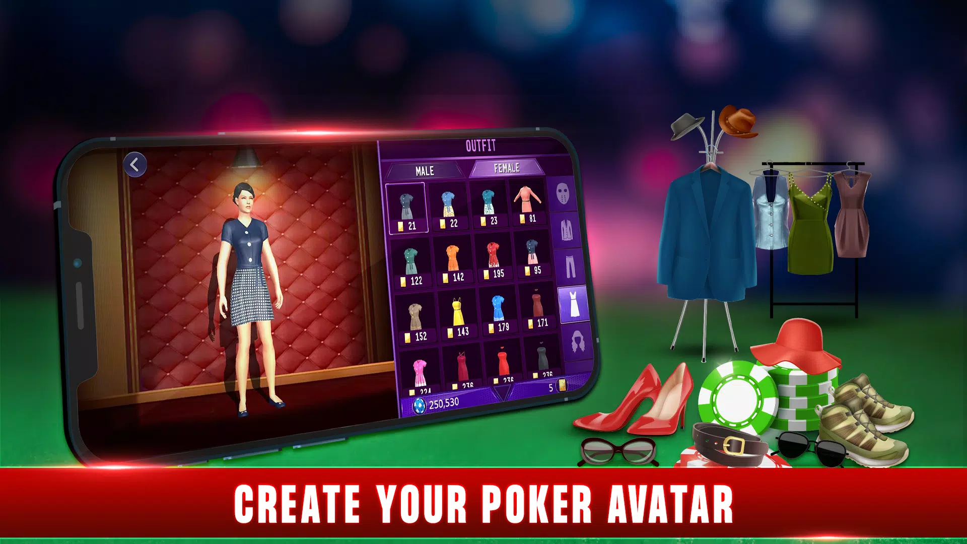 Customize your avatar & create your poker persona with a huge range of clothing and accessories.