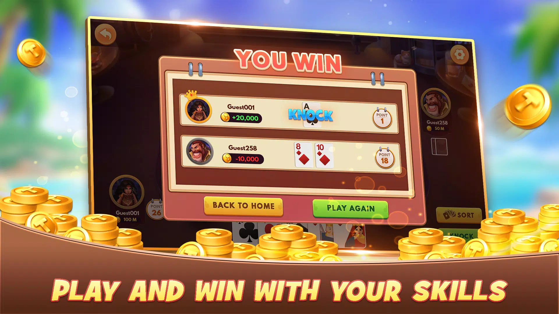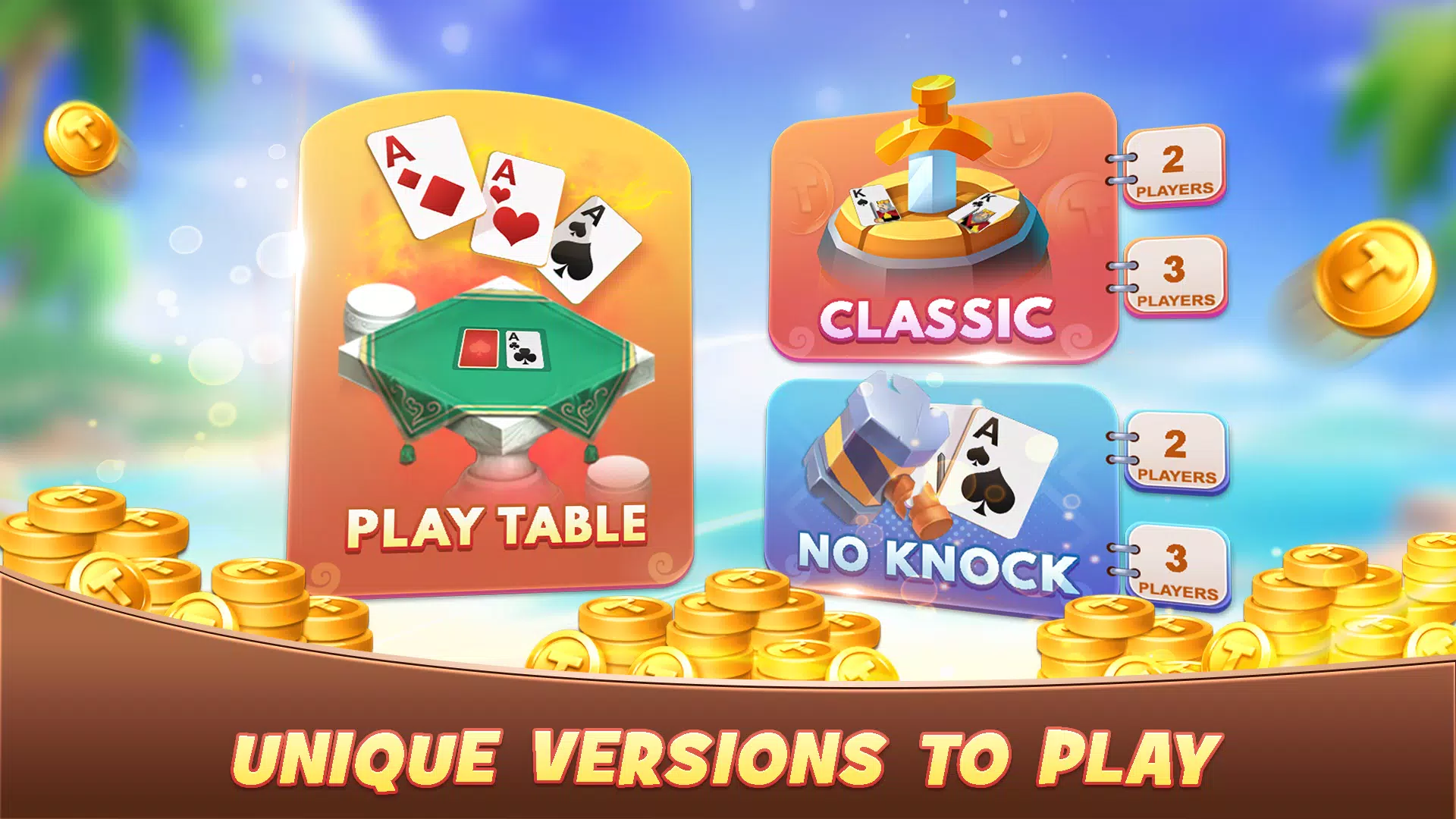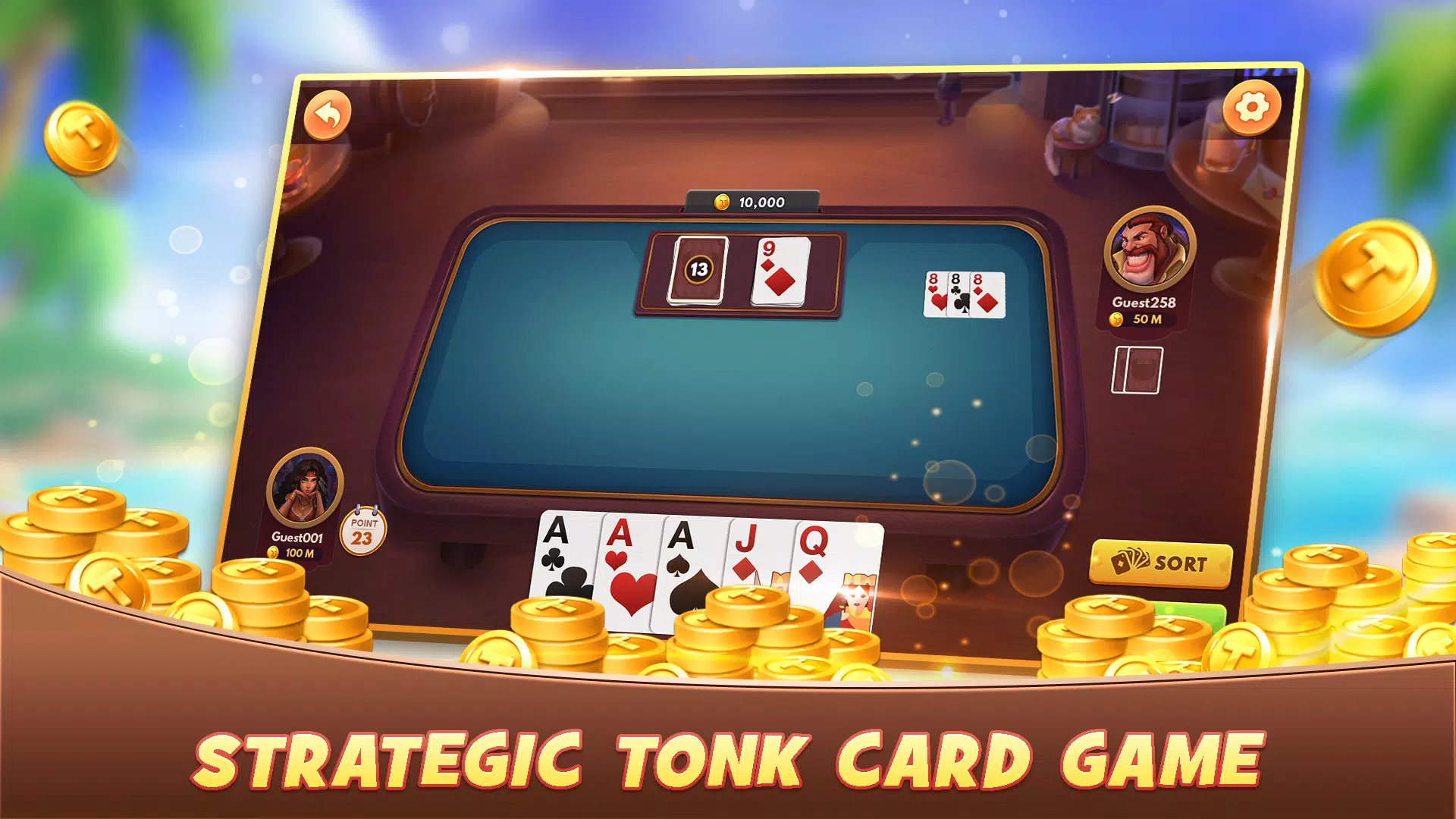 Tonk 的核心体验在于如何组成有效的卡牌组合,同时降低手中卡牌的总点数。每一轮游戏都将考验您的决策能力、时机把握和战术技巧。