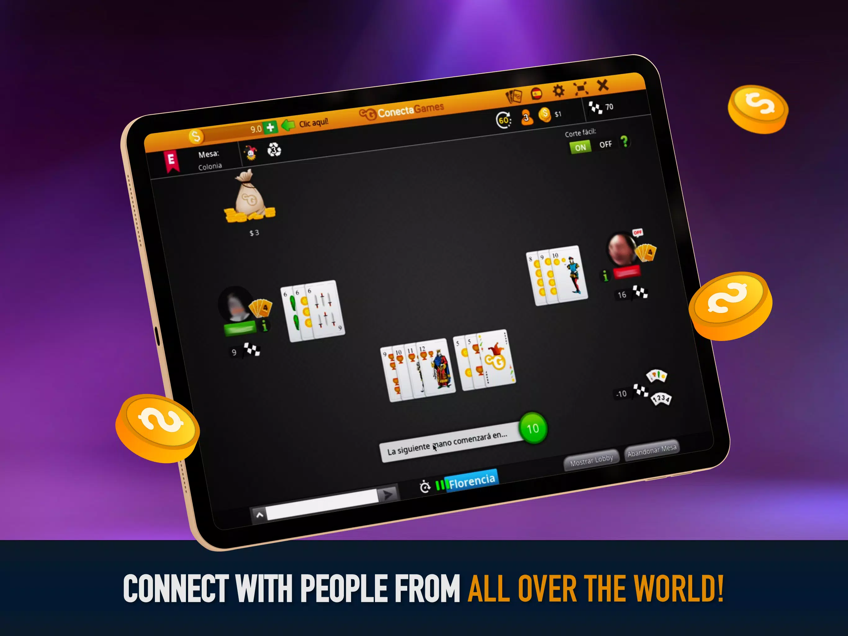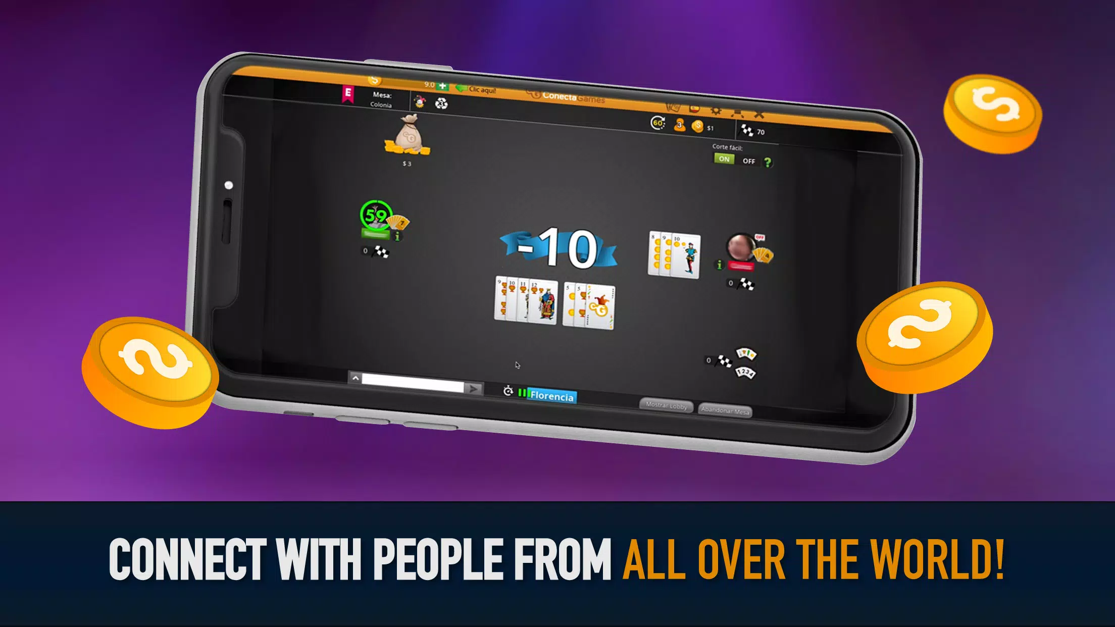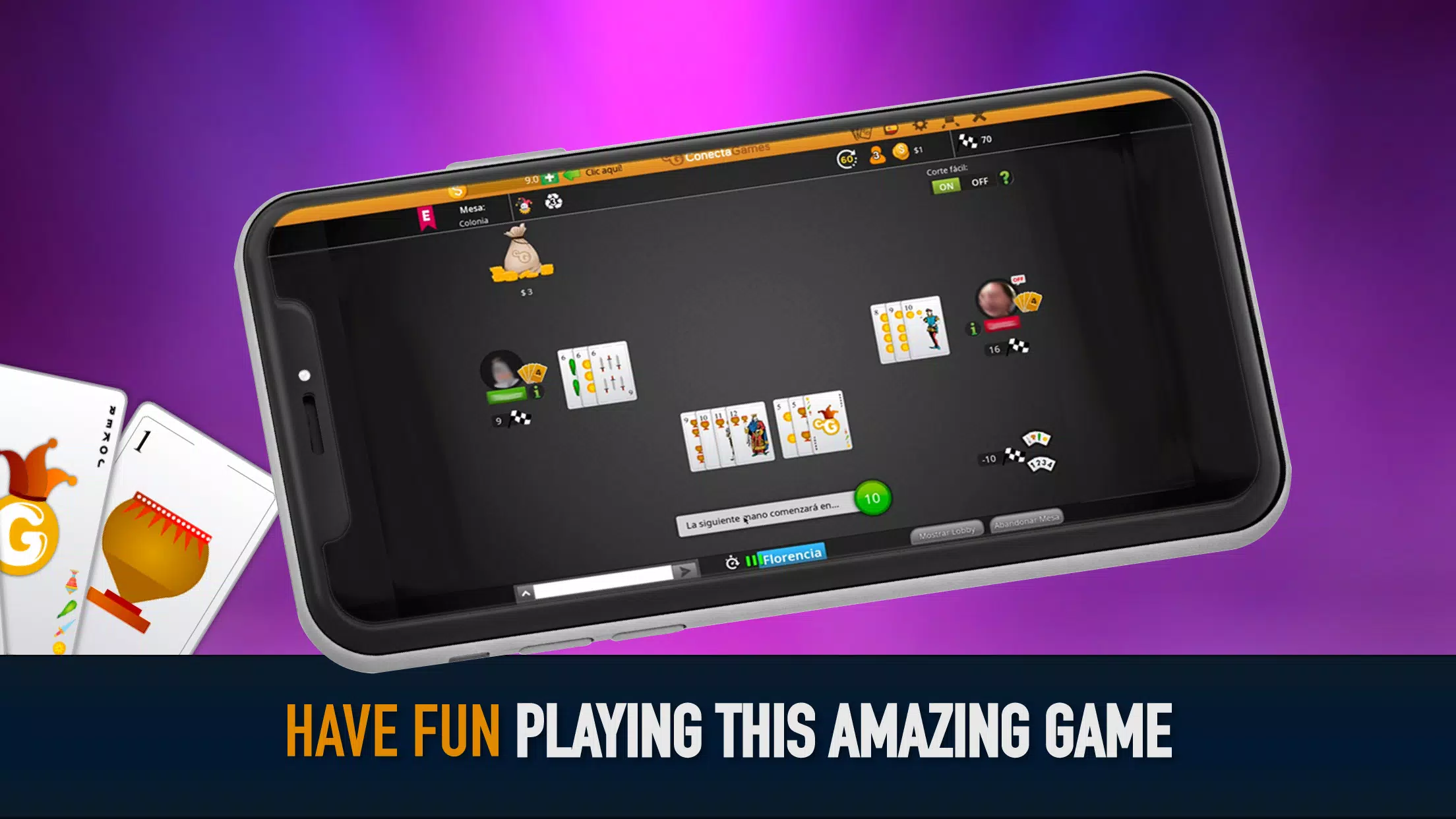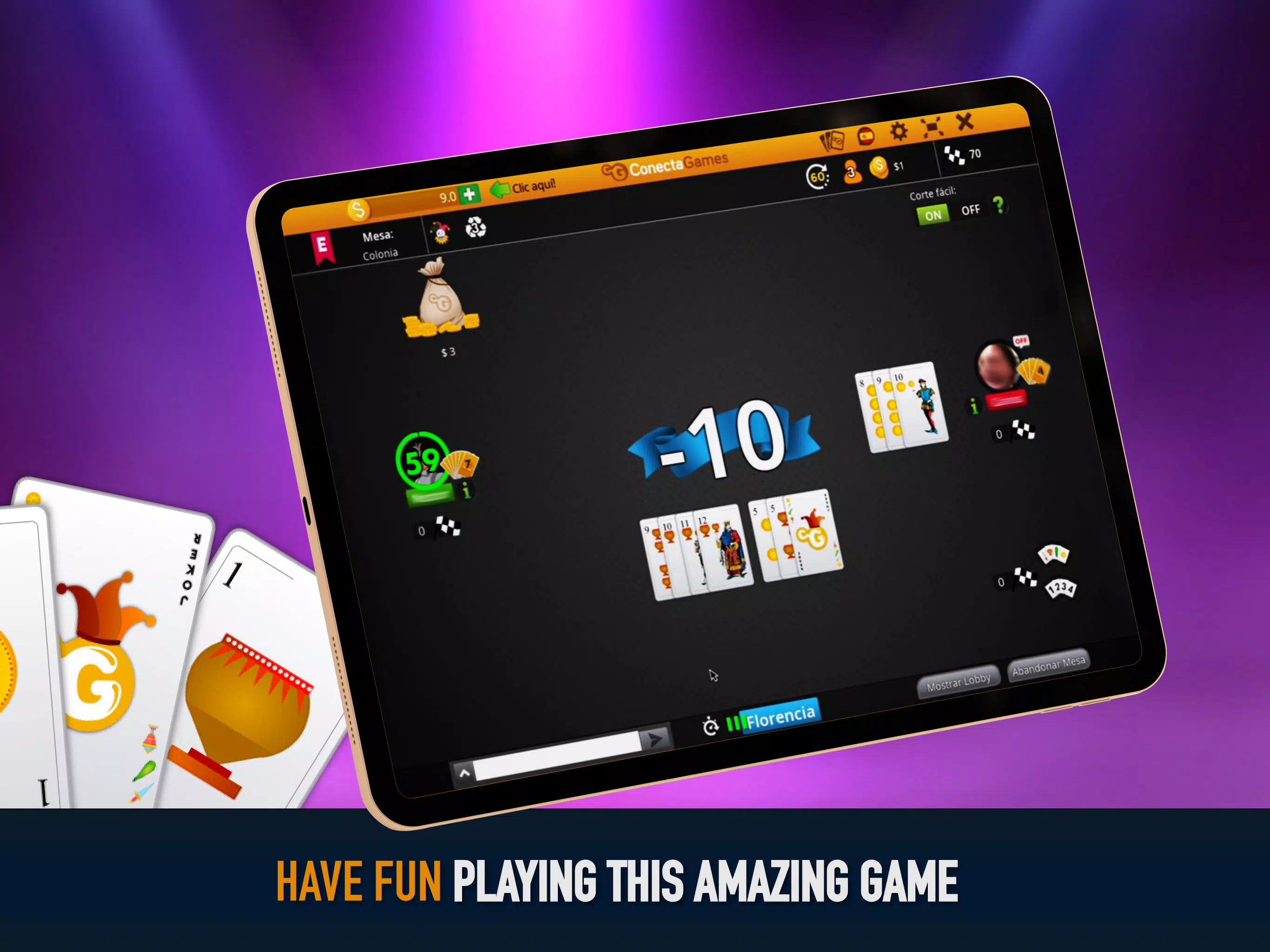 Conga 是一款适合 2 至 4 人玩的卡牌游戏。它拥有独特的功能,例如轻松敲牌和边桌,助您游戏更轻松!