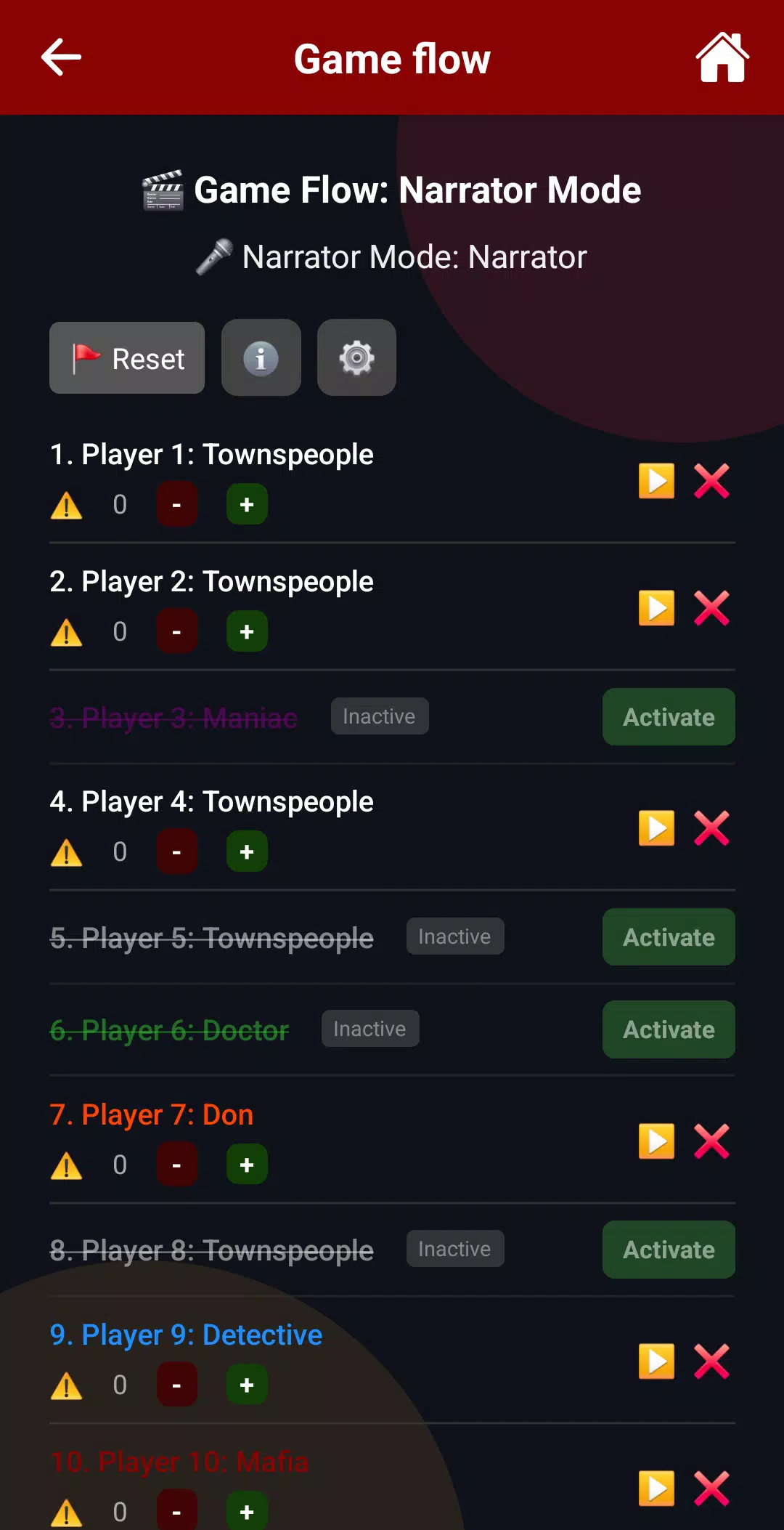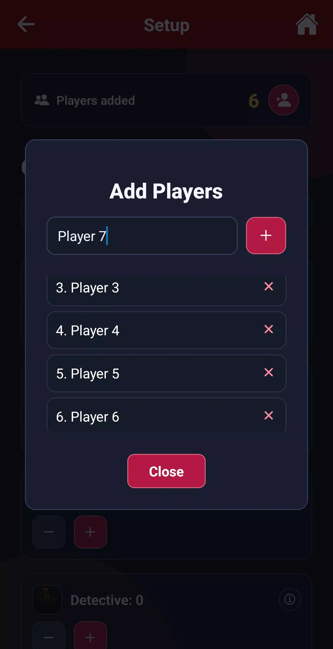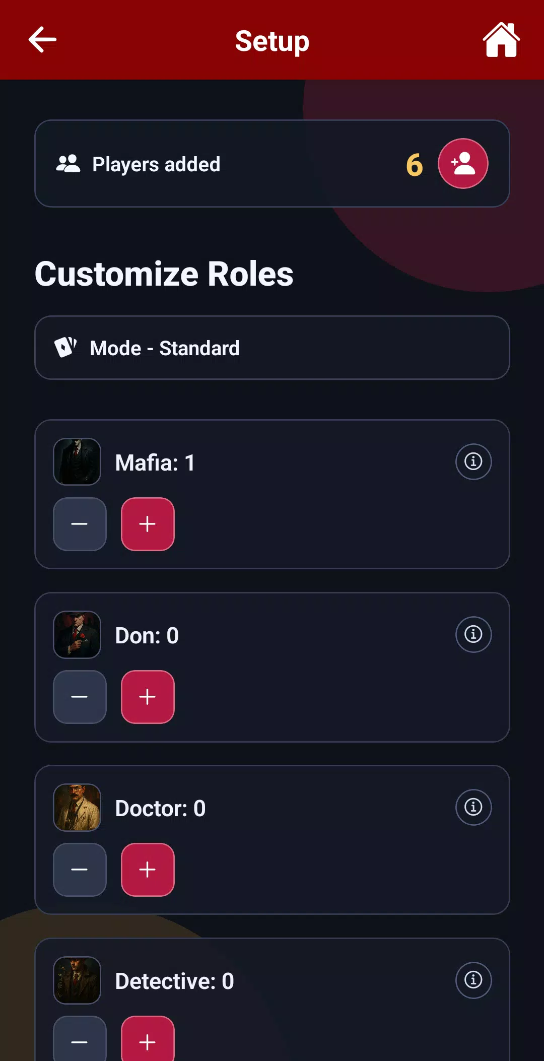分配角色:应用会秘密地为每个玩家分配角色,您也可以手动分配。