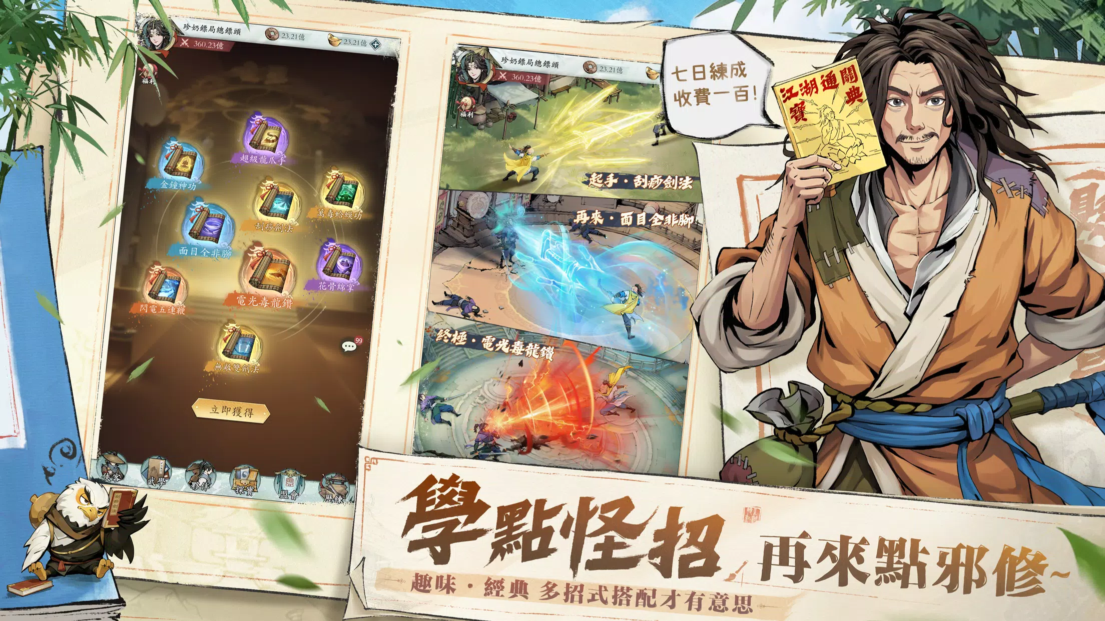 2026年首款非AI、纯手工、千人团队精致打磨的放置武学卡牌RPG登场!在游戏中以收集百家武学为主,过程中可以结识各种伙伴、收集名贵宝物、与美人互动、拜师学艺、探索奇趣江湖!