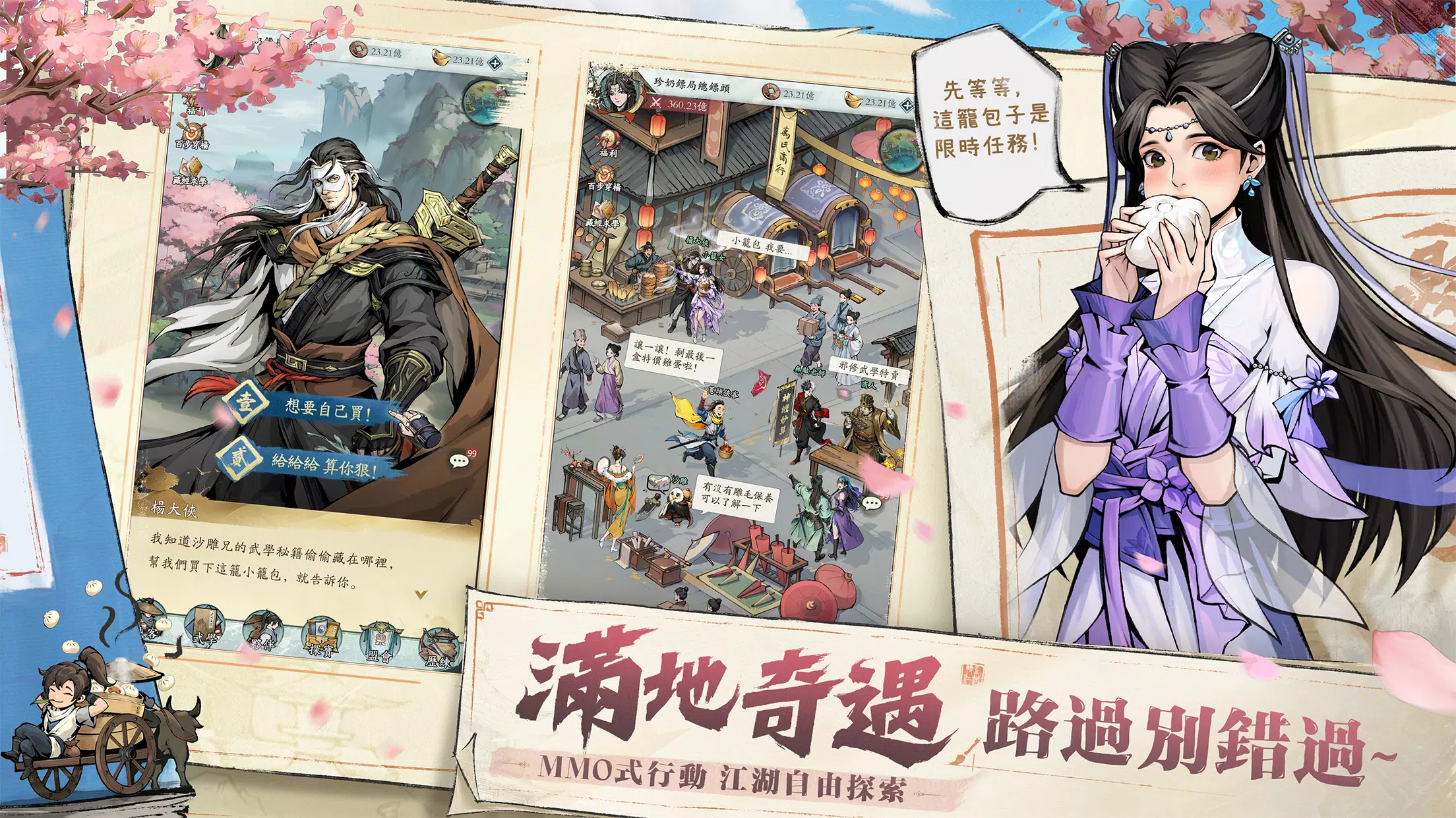 要在这个江湖中活着,需要很用力!用力去…买菜? !这是哪个AI想出来的破规则? ! 在这款另类武侠RPG手游,记住,你的每次出招,都将会成为江湖的…彩蛋? !