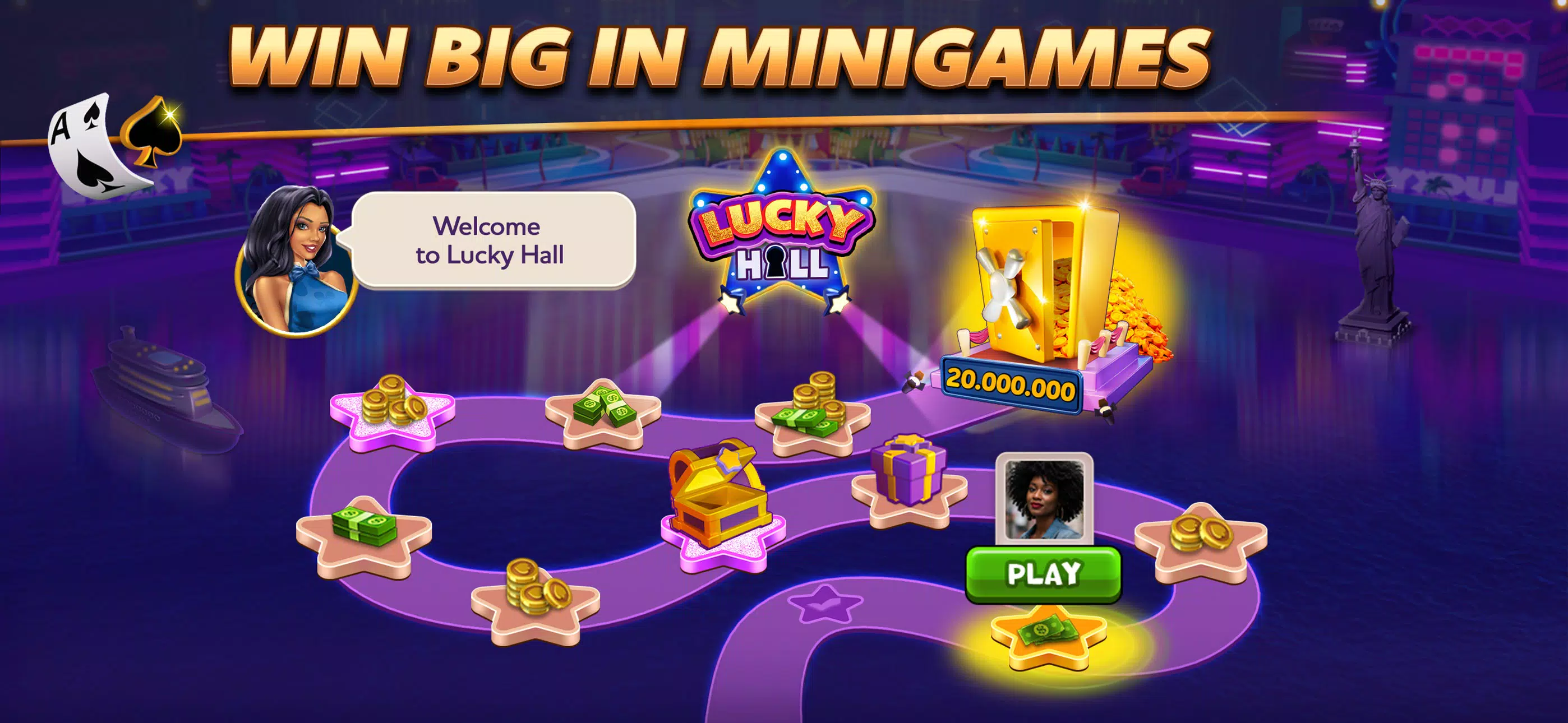 Win against the best card players and increase your chips as if you are betting in a real Las Vegas Casino. You can also double your chips by playing mini card games while waiting your world-class rivals.