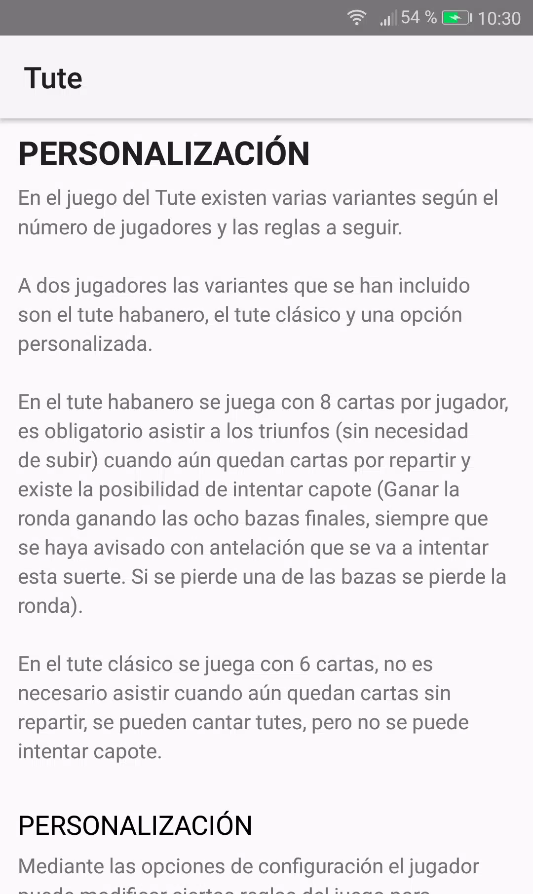 – 不同的游戏模式:Tute habanero、tute classic、tute成对