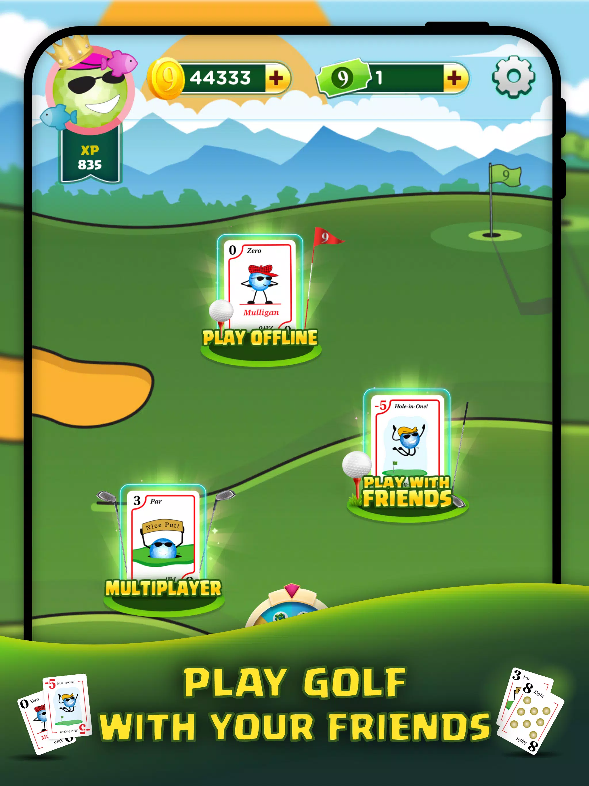 市面上最畅销的高尔夫游戏《Play Nine:高尔夫卡牌游戏》现已登陆手机平台!立即下载免费高尔夫游戏《Play Nine》,畅享多人游戏模式(与好友畅玩和多人游戏)挑战您的亲朋好友。