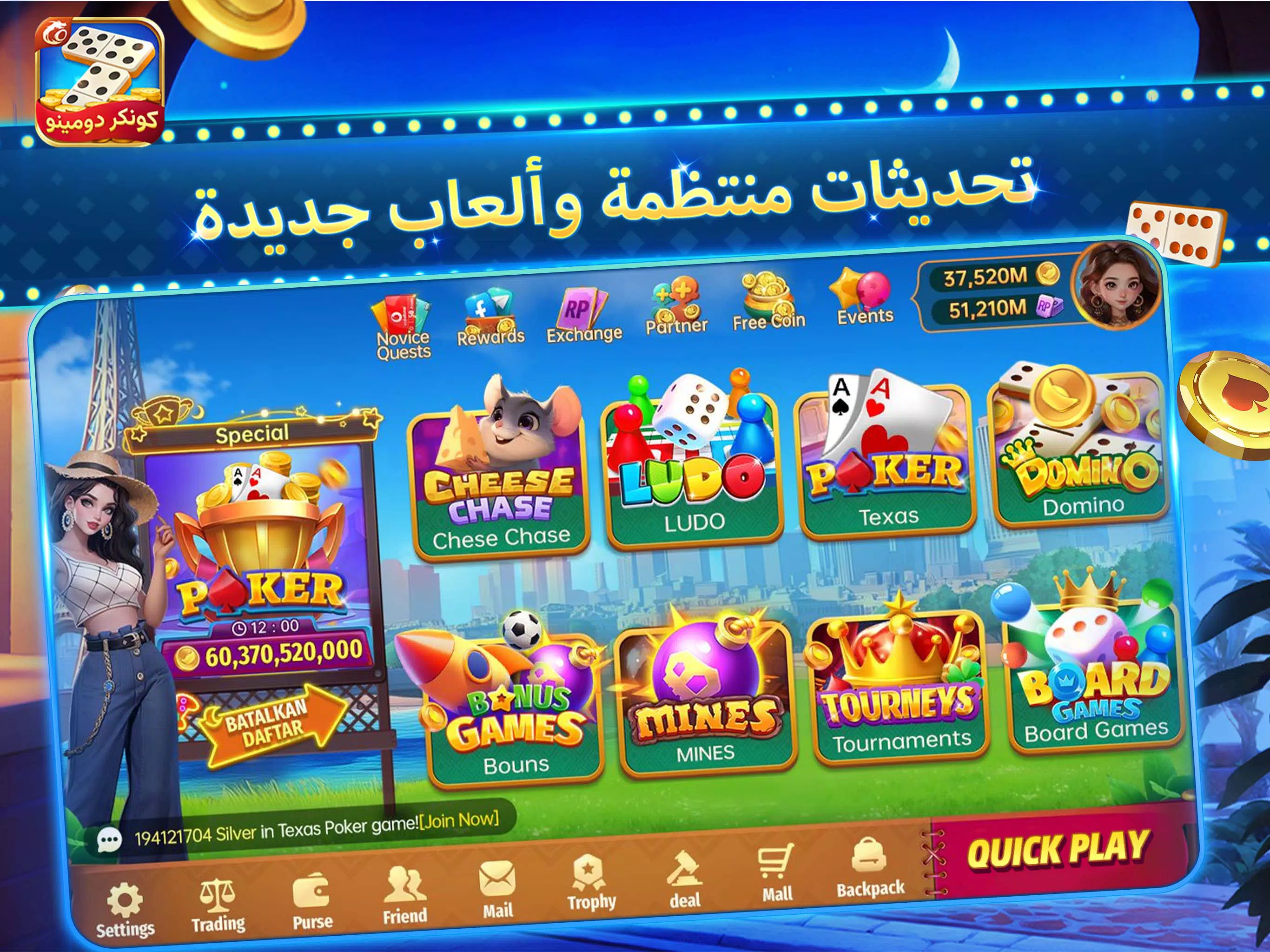立即在您的手机上下载《征服多米诺》,体验精彩刺激的游戏乐趣。别忘了关注我们的社交媒体账号,获取更多精彩奖励!抢先了解我们的促销活动和最新资讯!