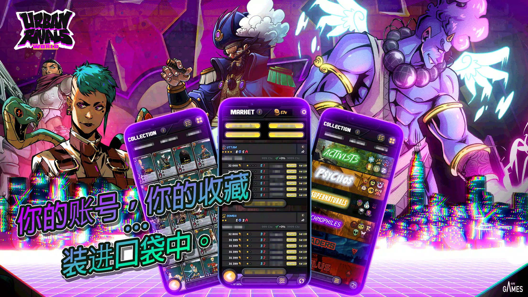Urban Rivals为你提供超过2500个角色,每个角色都有自己的进化路径和故事。通过完成任务获得更多奖励,让你的角色进化,提升你的收藏等级和赛季等级!