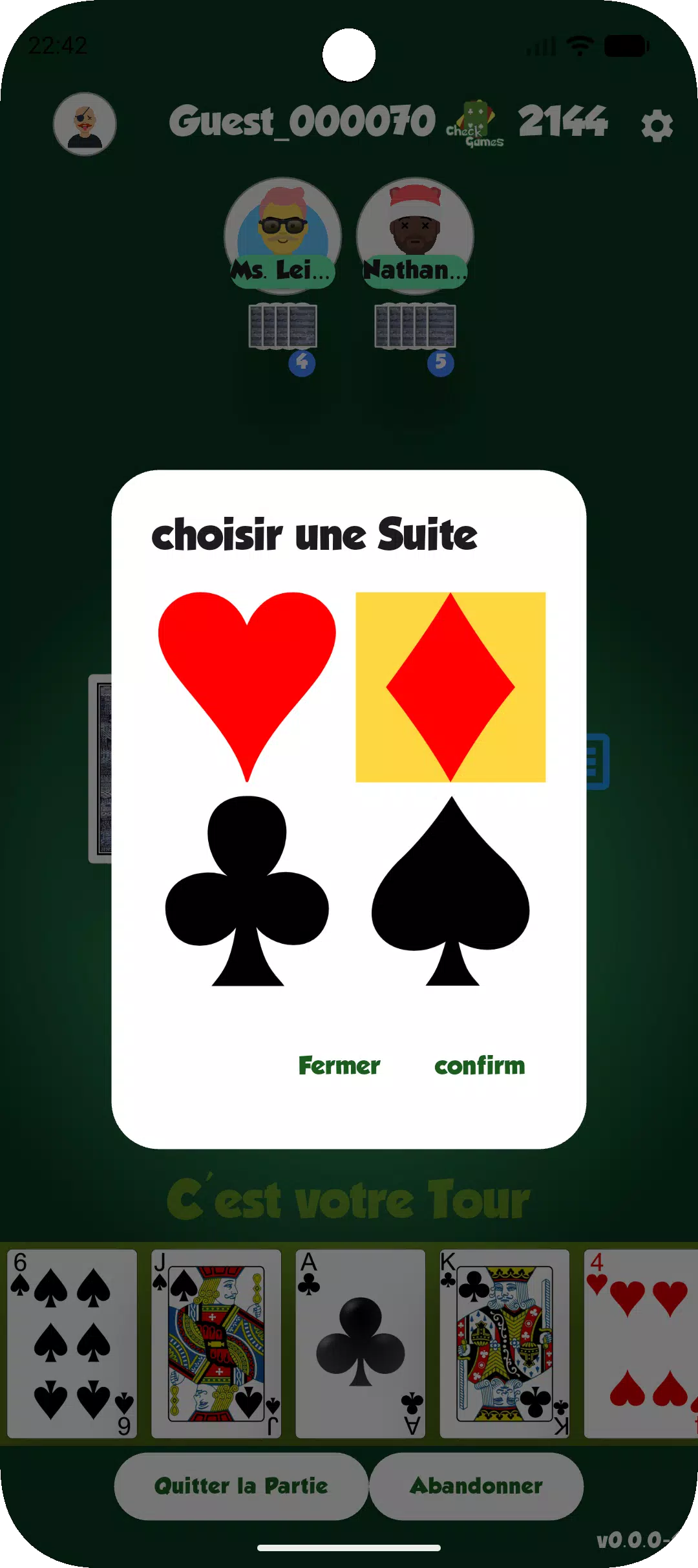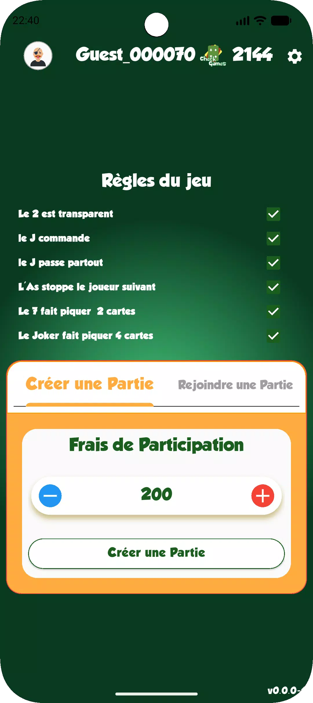 堆叠:玩家可以堆叠惩罚牌(例如,如果打出 7 或小丑牌,下一位玩家可以再打出一张 7 或小丑牌来传递惩罚)。