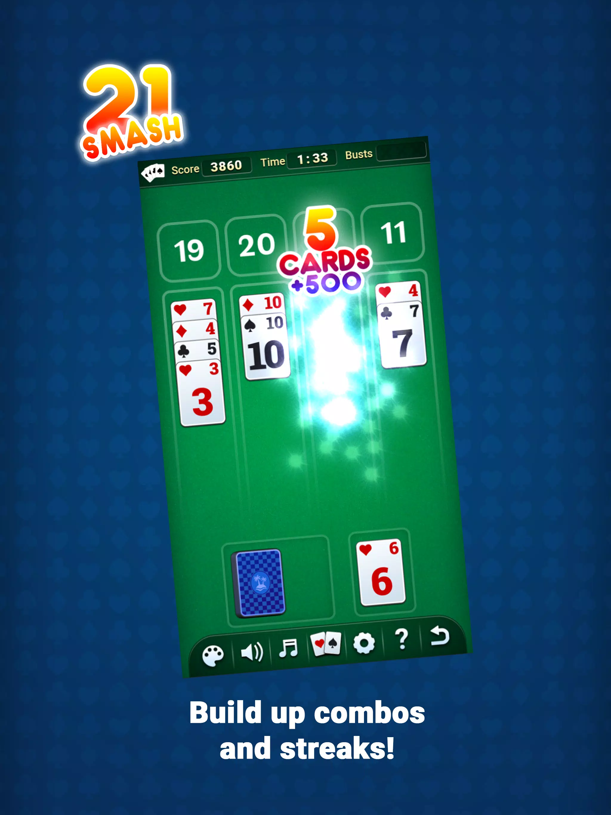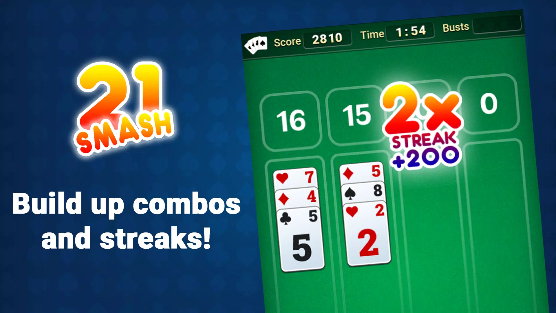 尝试获得21点,或堆叠五张卡牌来粉碎敌人!尽可能多地进行连击,并争取尽快完成!与时间赛跑!