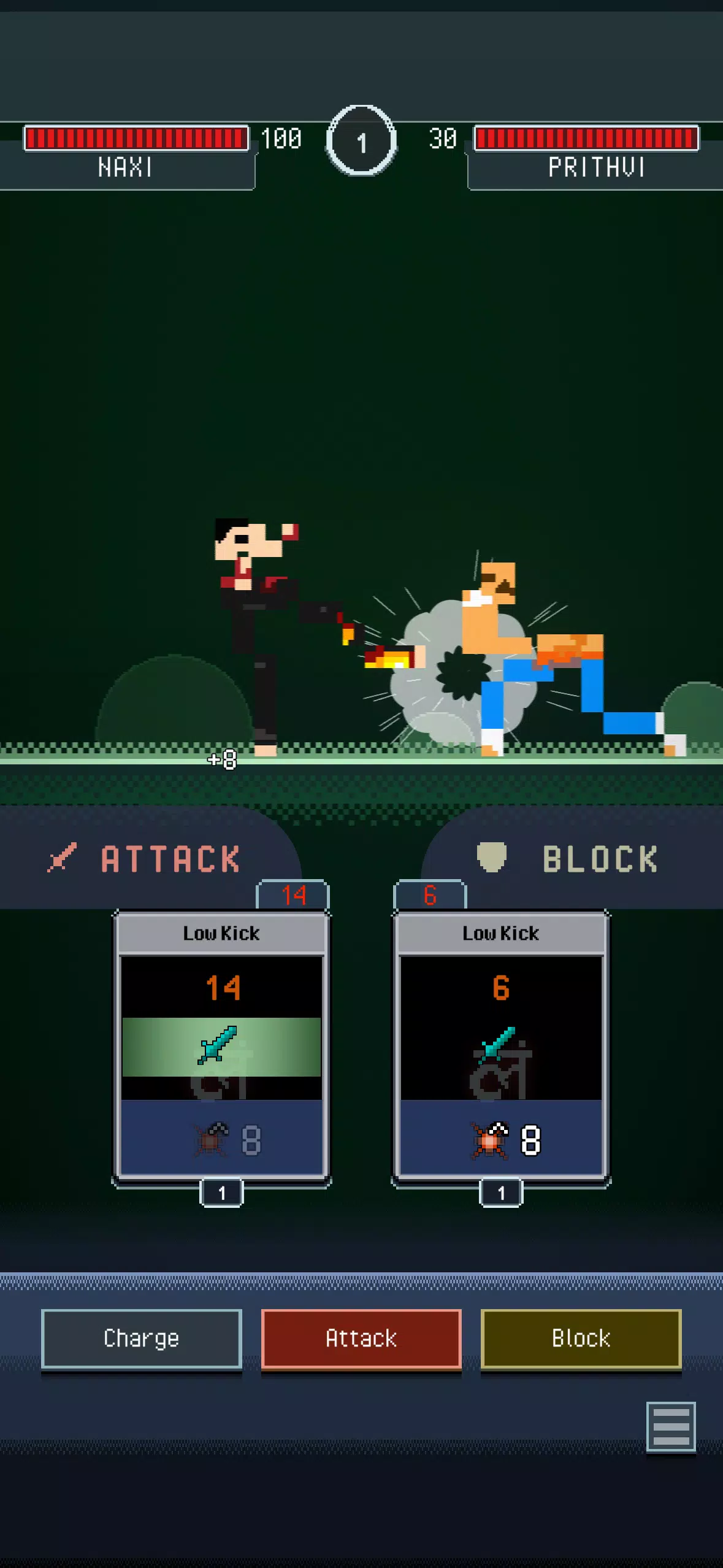 每场战斗都是一对一的决斗,双方同时行动。你将面对一系列持续不断的对手,在战斗间隙获得奖励,并尽可能地生存下去。