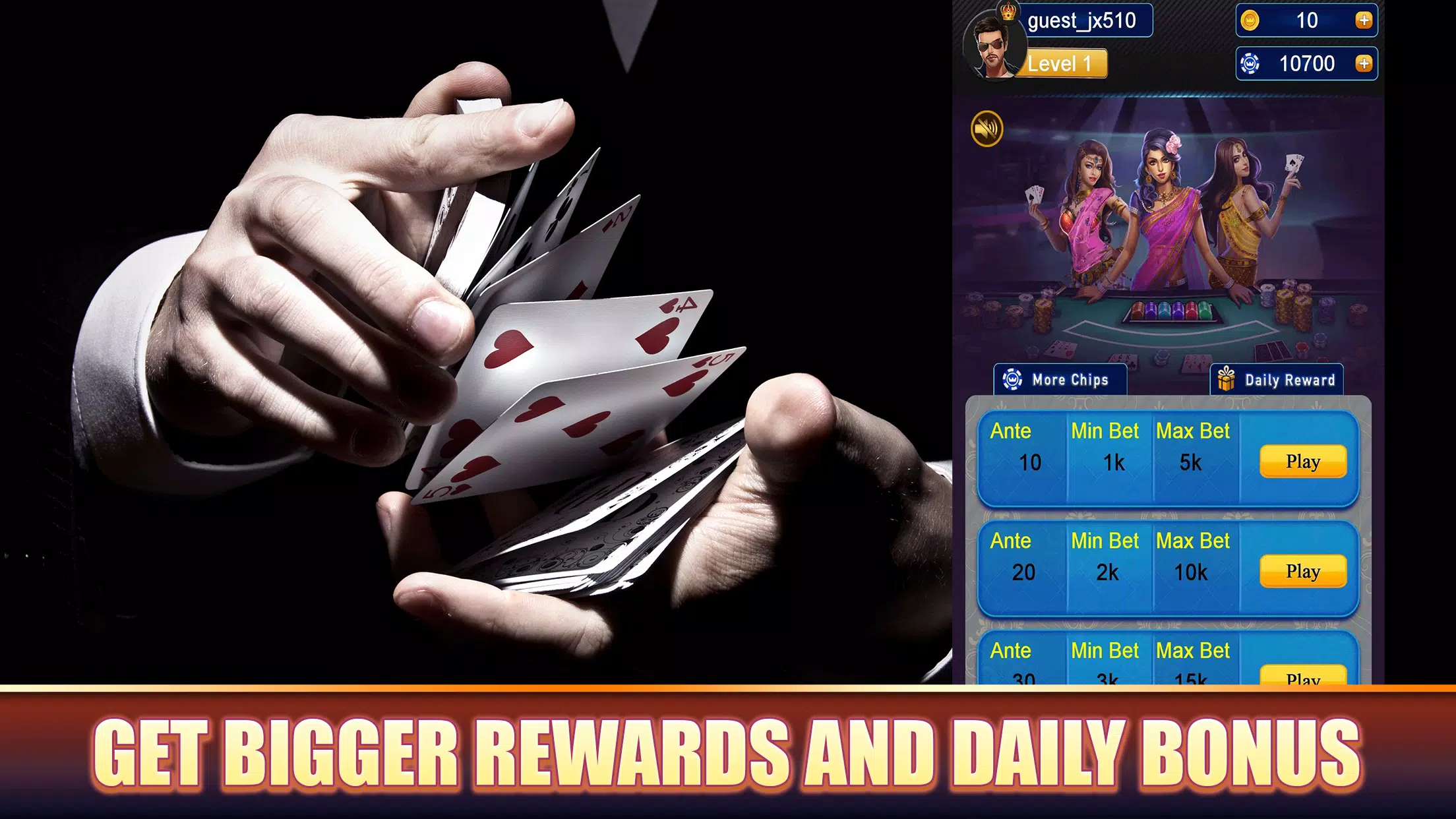 立即下载 Andar Bahar Teen Patti Rummy,体验印度最受欢迎的预测纸牌游戏带来的刺激快感。