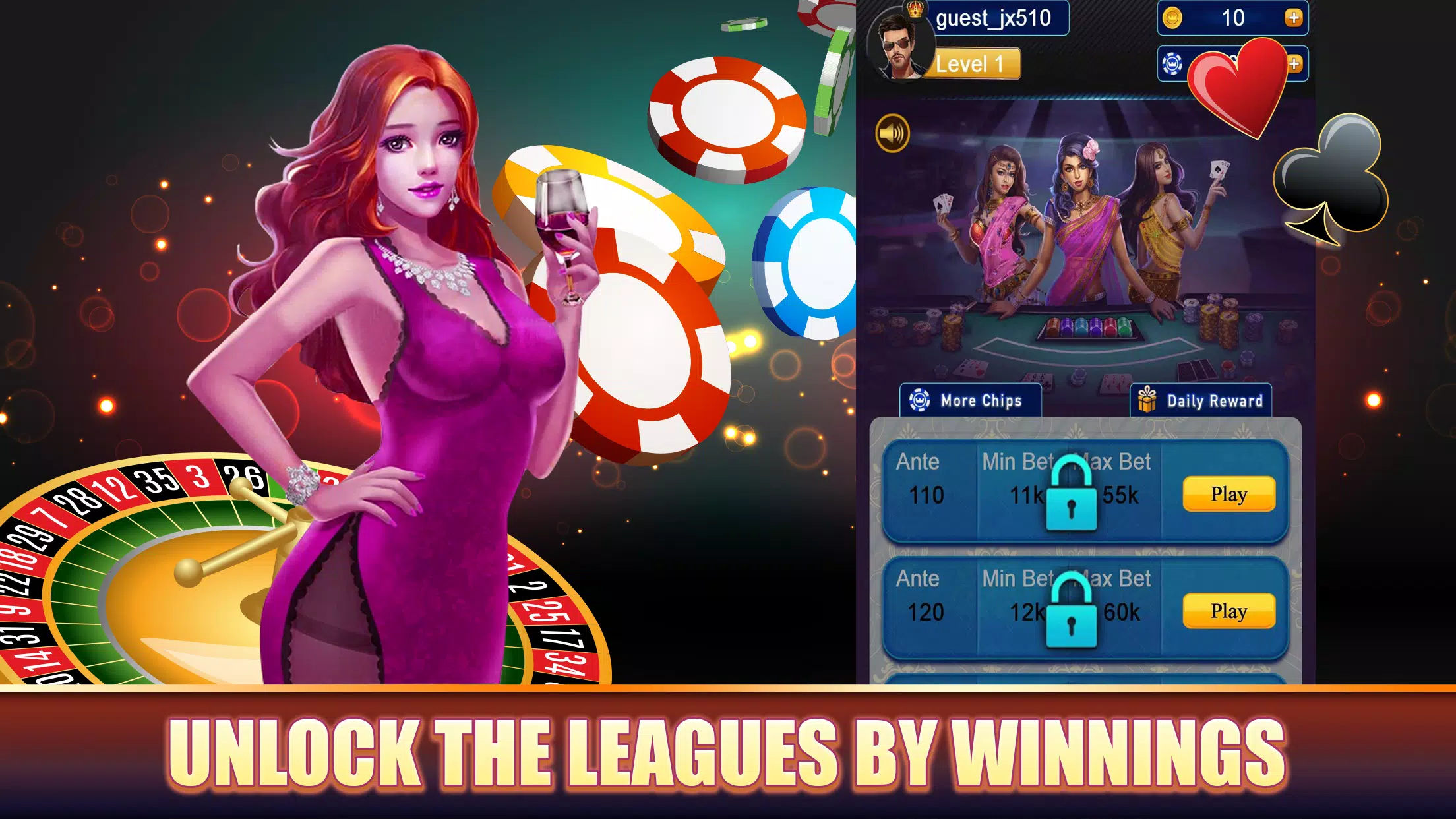 这款经典的印度纸牌游戏也被称为“中间牌游戏”(InBetween)或“中间牌游戏”(Middle Card Game),使用一副牌,带来酣畅淋漓的游戏体验。如果您喜欢三张牌拉米牌、拉米牌风格的投注游戏或传统的印度纸牌游戏,那么这款游戏绝对适合您。