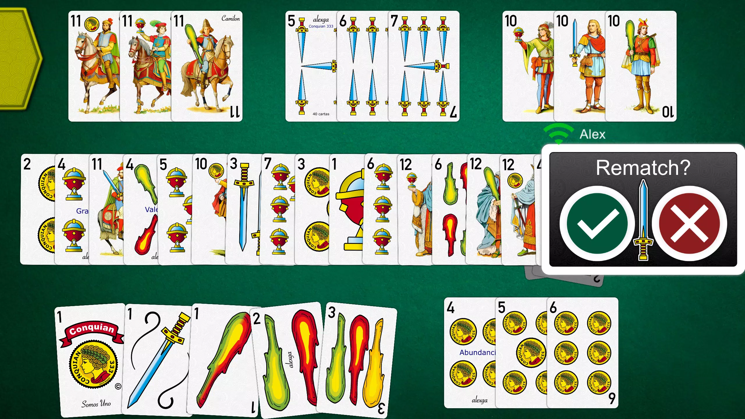 包含经典的 Conquian 规则,并采用智能验证机制,确保只允许合法操作。