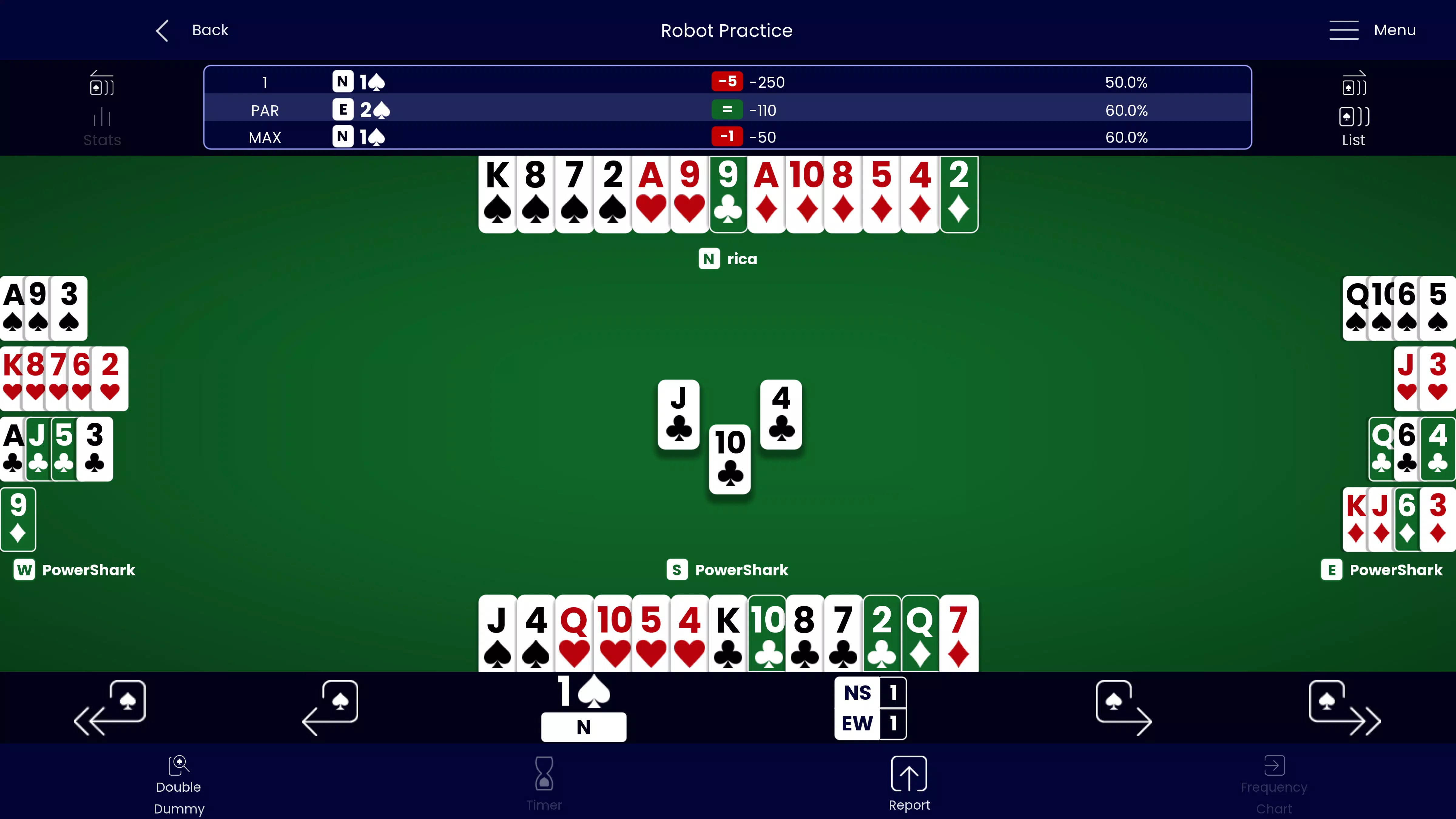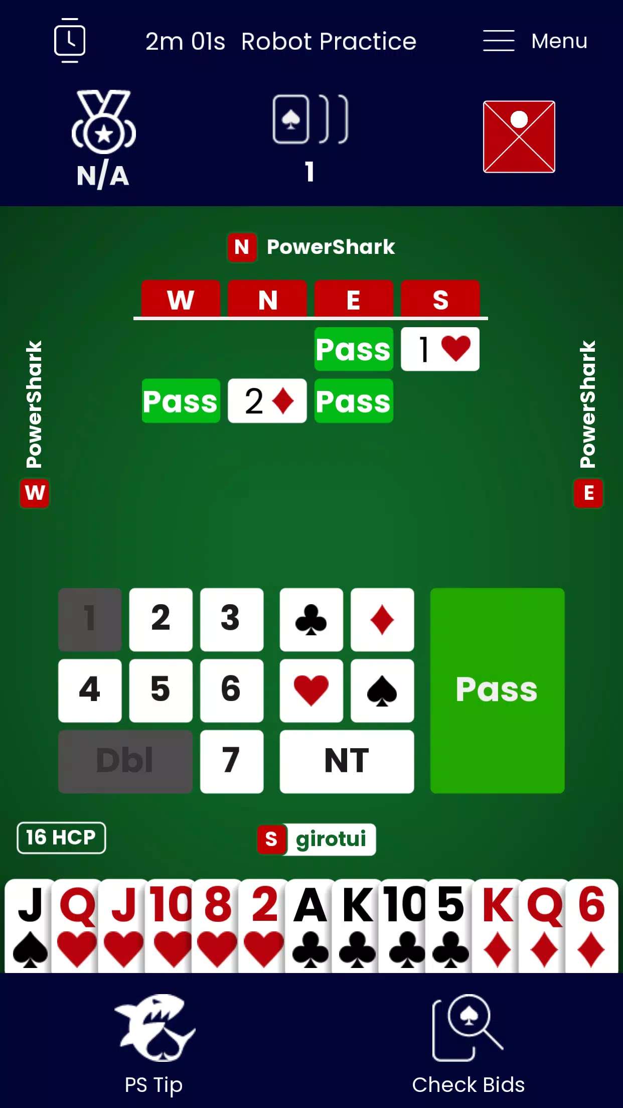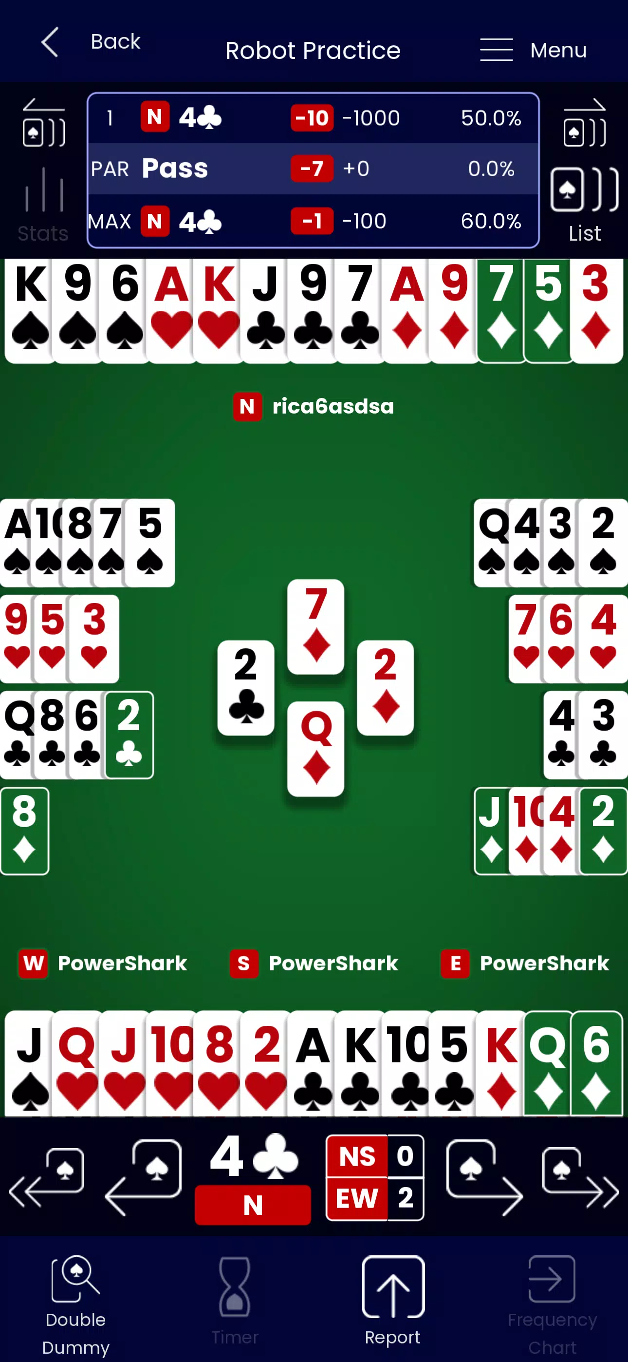 • 检查叫牌:在叫牌过程中,输入任意叫牌,在 PowerShark 跟注之前查看其解读。