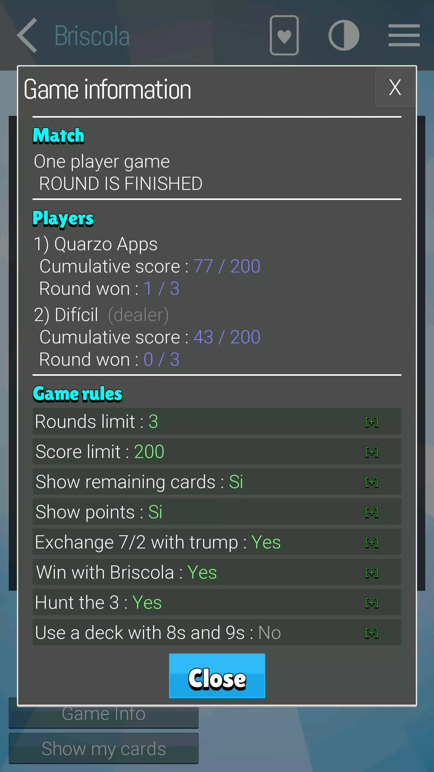 布里斯科拉(La Brisca)也被称为布里斯科拉(Briscola)或布里斯卡斯(Briscas),是一款在西班牙、意大利、波多黎各、古巴等许多国家/地区广受欢迎的纸牌游戏。该应用包含完整的教程,以及非常详细的帮助、统计数据、配置选项等。