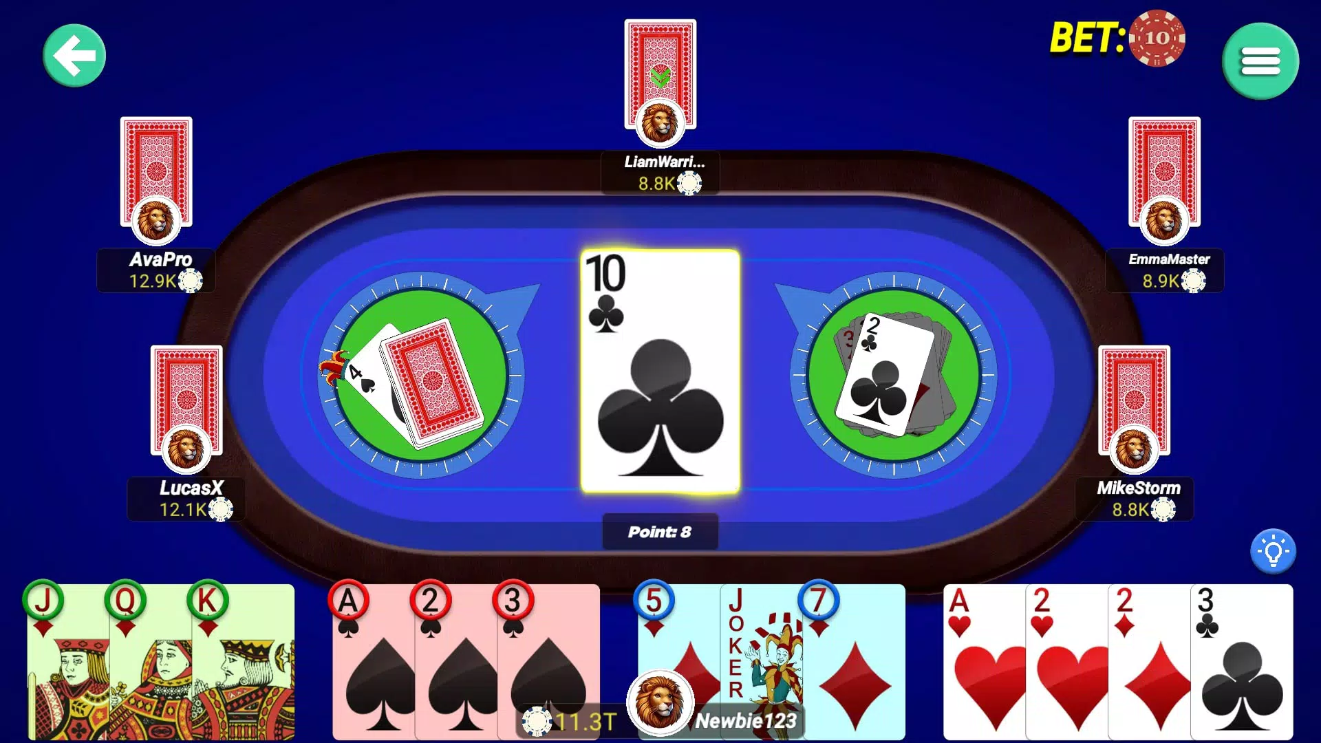 – 畅玩双人拉米纸牌游戏,或加入大型多人拉米纸牌桌,体验多样化的游戏玩法。