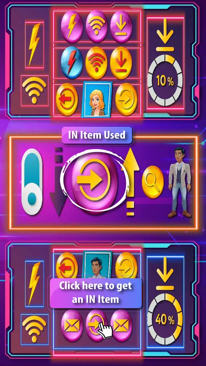 – 当下载完成 100% 后,您将收到一条模拟消息,点击该消息即可获得“进入”或“退出”道具: