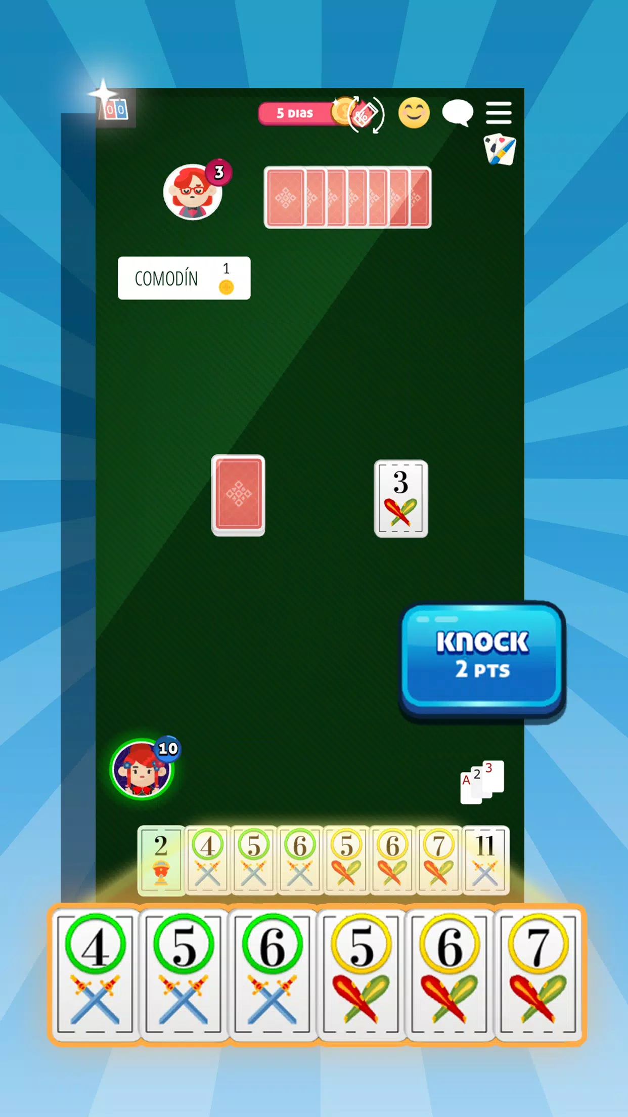 安装最好的应用来播放Chinchón,也称为Chinchorro或Golpe!来自 Gin Rummy 家族,它是西班牙流行和经典的纸牌游戏,传统上是在西班牙甲板上玩的。 立即下载并与来自世界各地的人们一起玩乐!