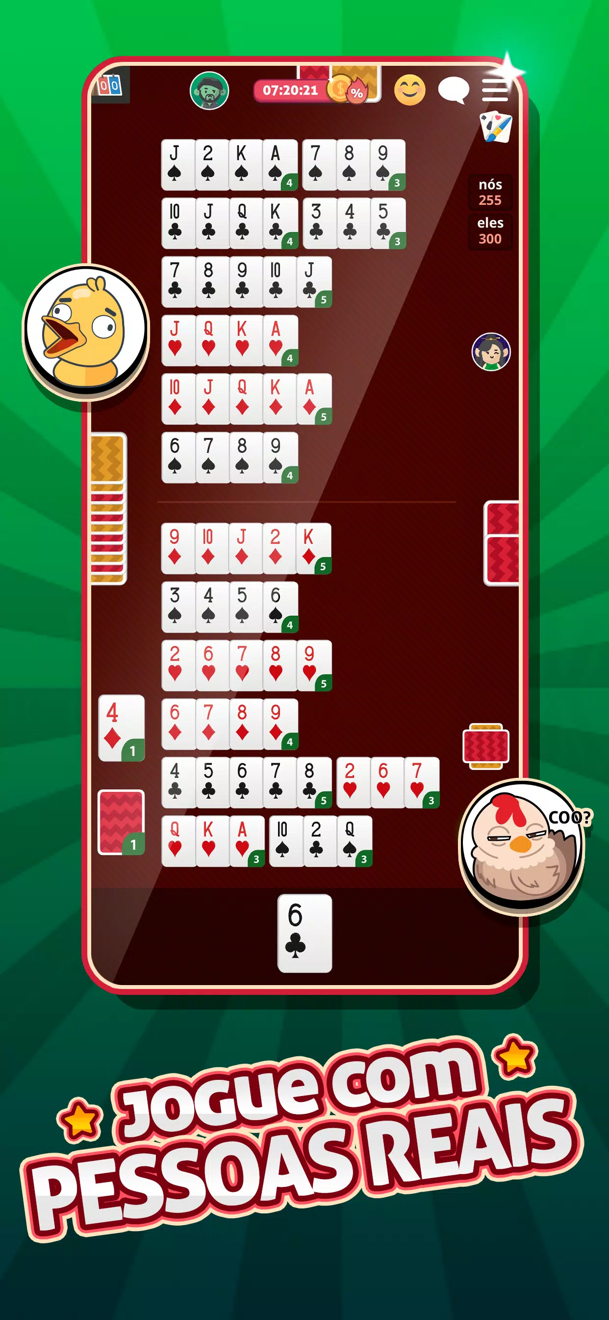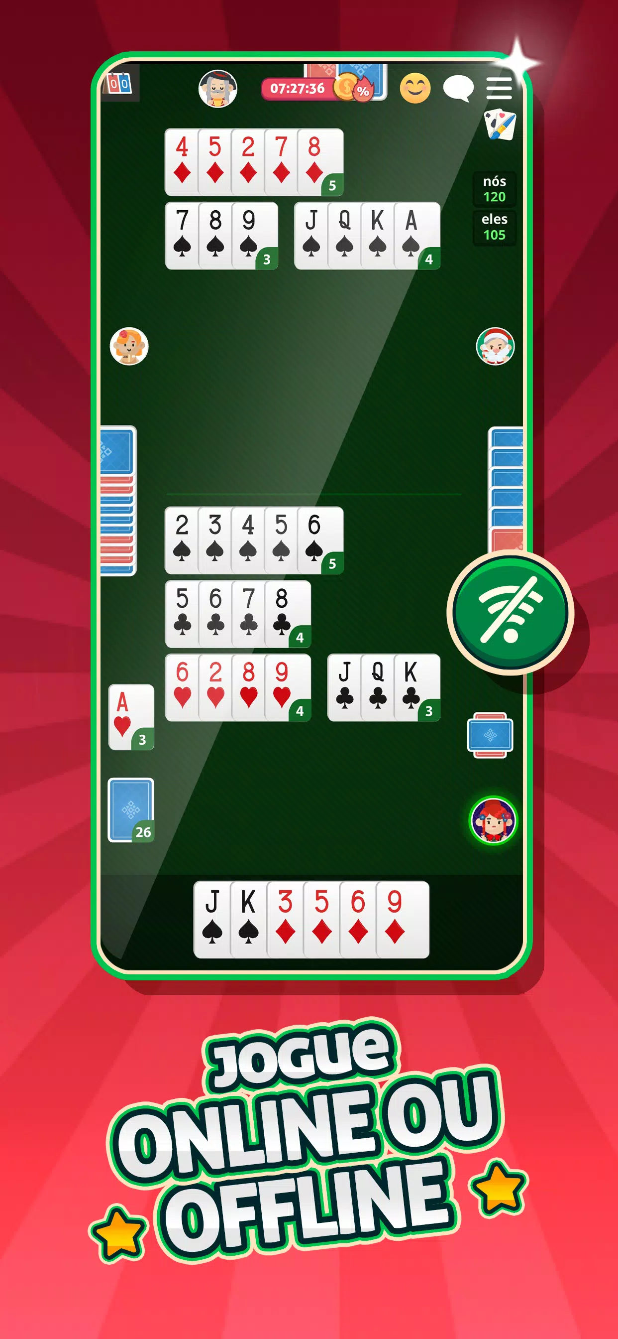 与来自巴西和世界各地的人一起玩Buraco 。这种经典的纸牌游戏也称为Canastra或Biriba,在家人和朋友中广泛使用。使用您的策略来制作干净的canastas并在牌中击败对手。