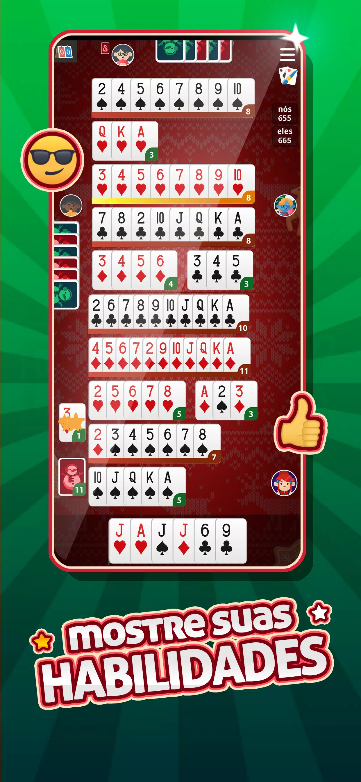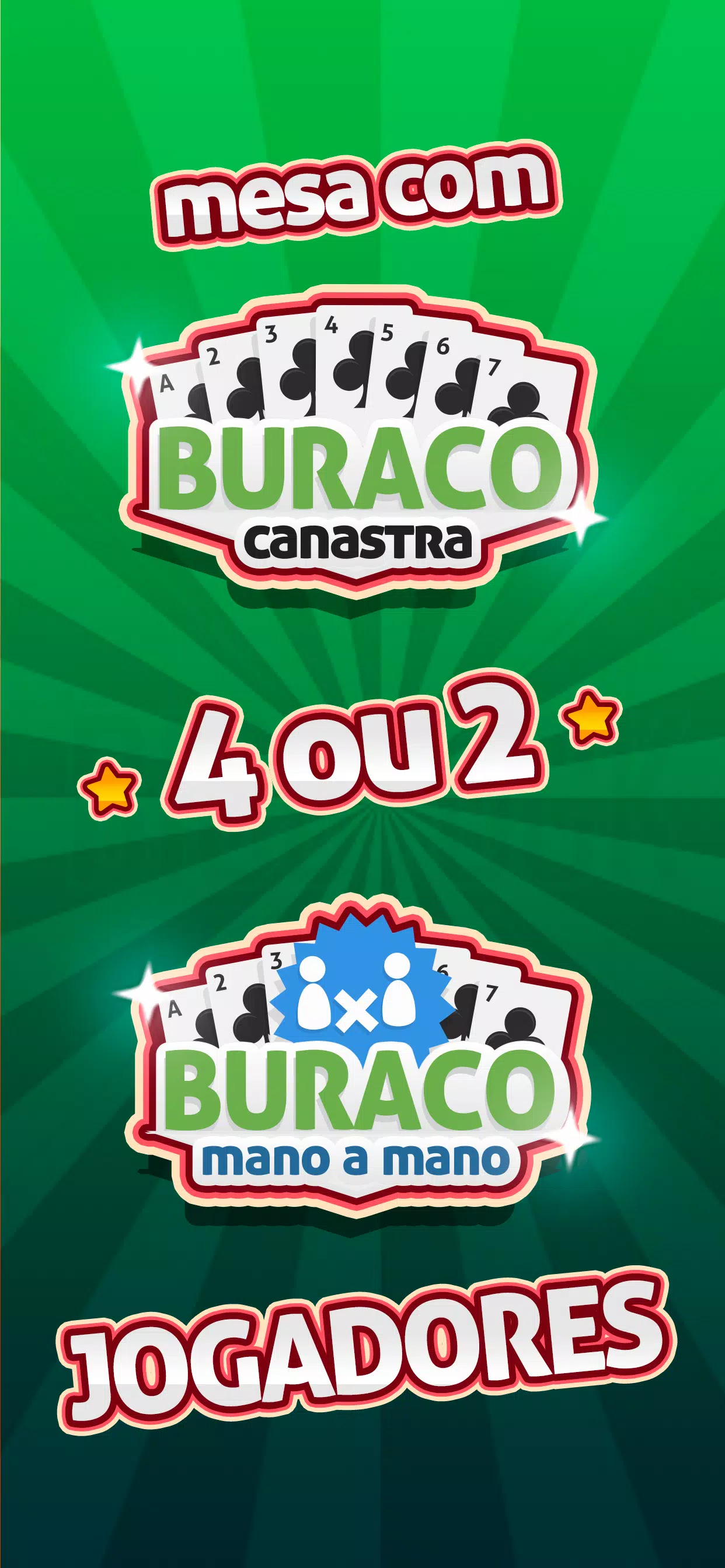 Buraco (canastra或biriba)是卡片的MegaJogos应用程序,适用于业余爱好者和专业人士! 立即下载并与您的朋友在手机或平板电脑上玩耍。