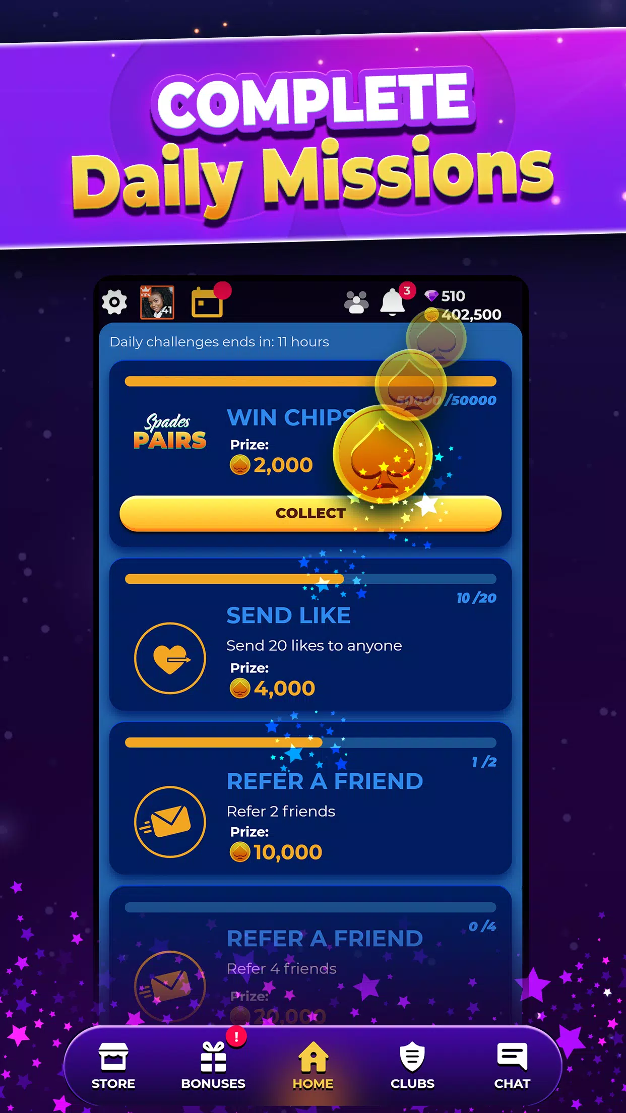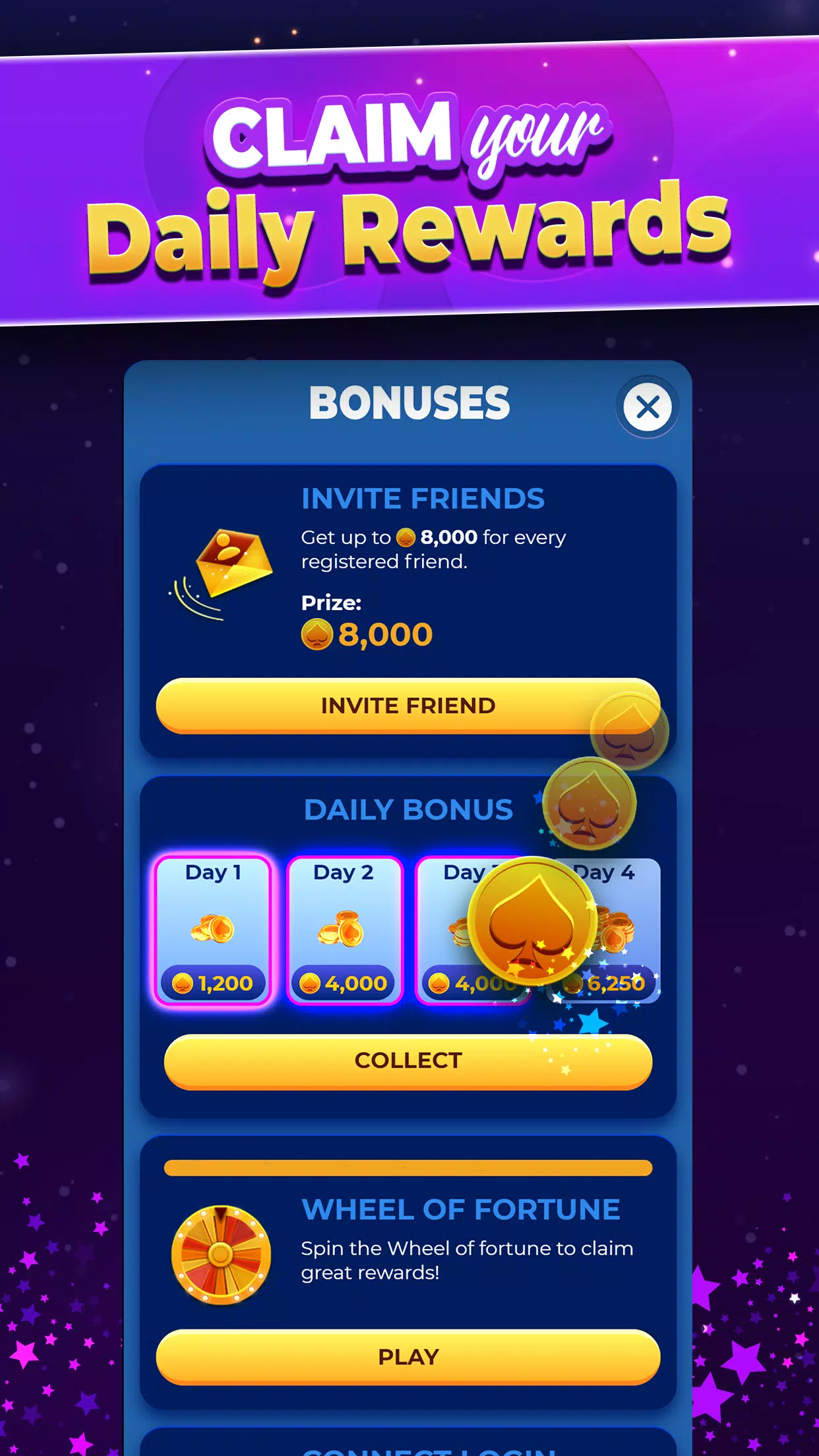 – 每日免费筹码! 领取每日累积奖励。