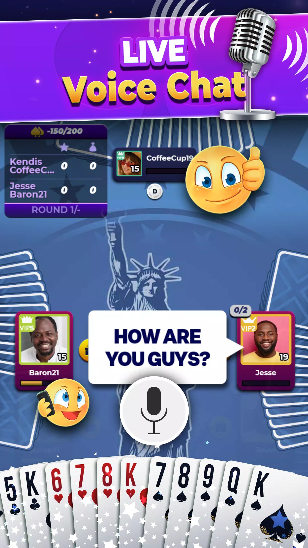 – 在多人免费黑桃游戏中发送表情符号、文字和礼物。