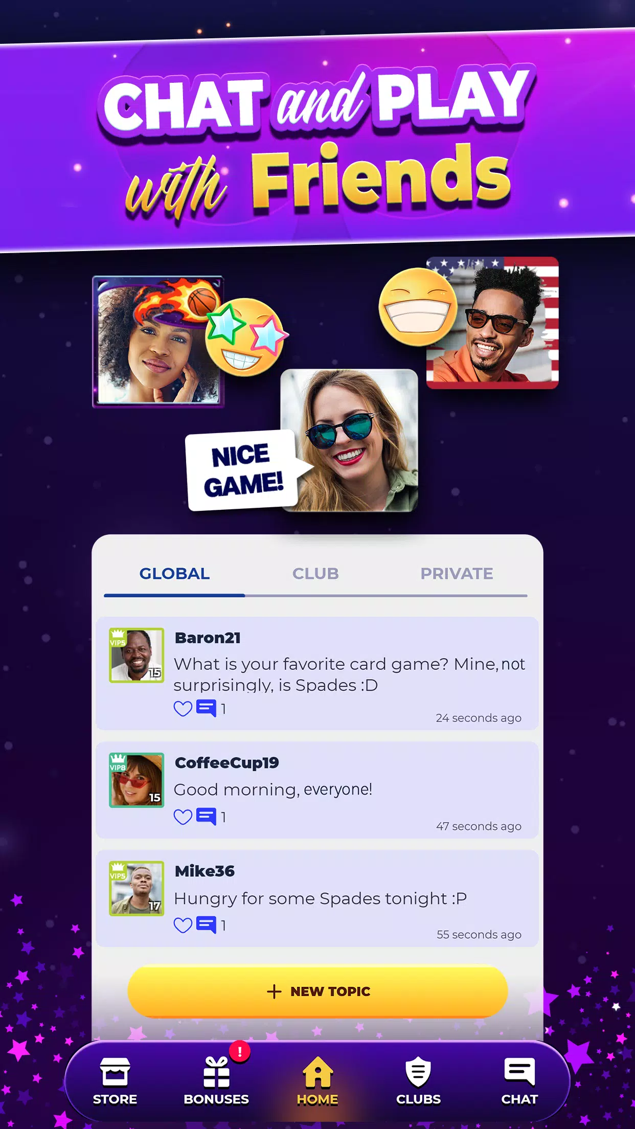 – 公共聊天! 在社区中发送消息、创建话题并结识新朋友!