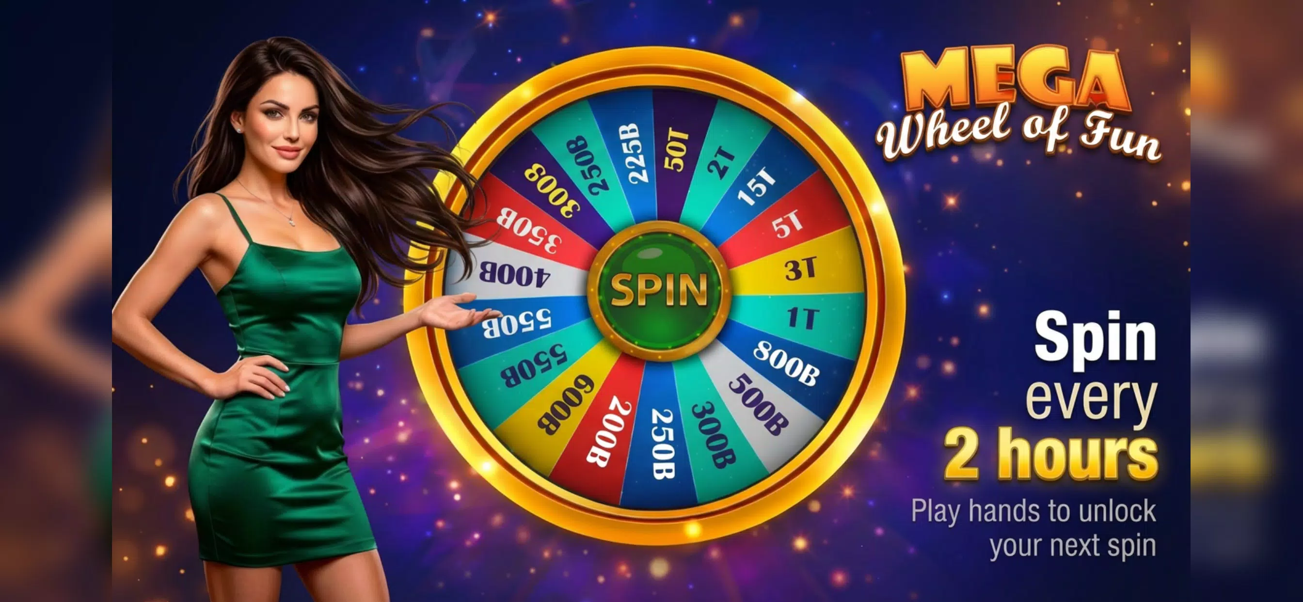 大赢和高额投注:玩好牌,完成挑战就有机会赢取免费筹码;旋转幸运转盘赢取免费筹码;如果拿到同花大顺,还能赢得 Lala 大奖!