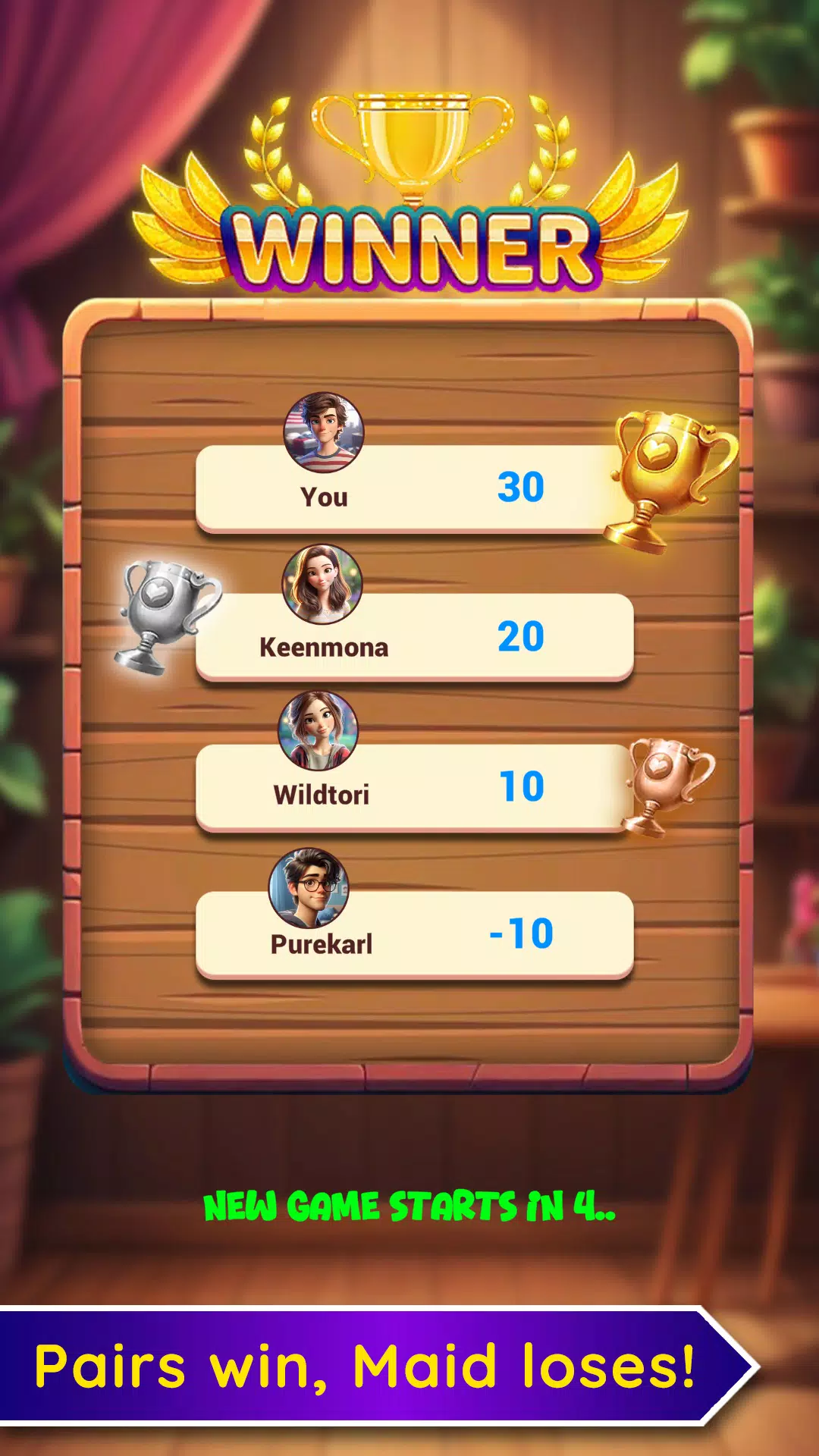 老处女是一款经典且适合家庭的卡牌游戏,充满运气和欢笑!配对,智胜对手。这款经典游戏老少皆宜,简单易学,乐趣无穷。