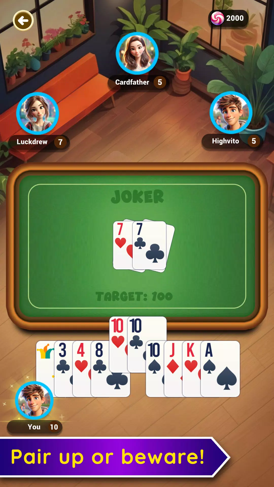 玩法:轮流从下一位玩家的手牌中抽一张牌。丢弃配对的牌;小丑无法配对,因此会被轮流传阅。