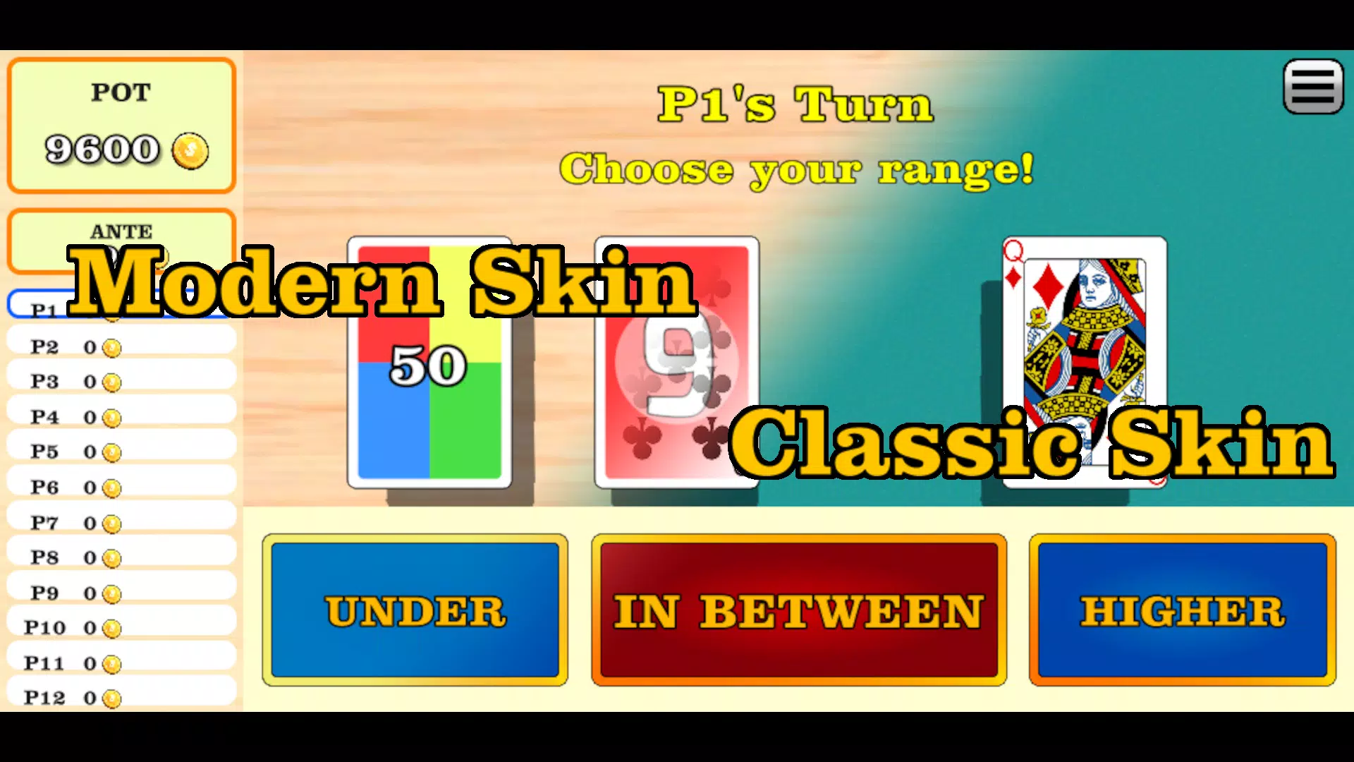 欢迎来到 In-Between 的虚拟牌桌,这是一款经典的策略卡牌游戏!在这款激动人心的应用中,玩家可以体验猜测下一张牌是否会出现在桌面上已有的两张牌之间的刺激。