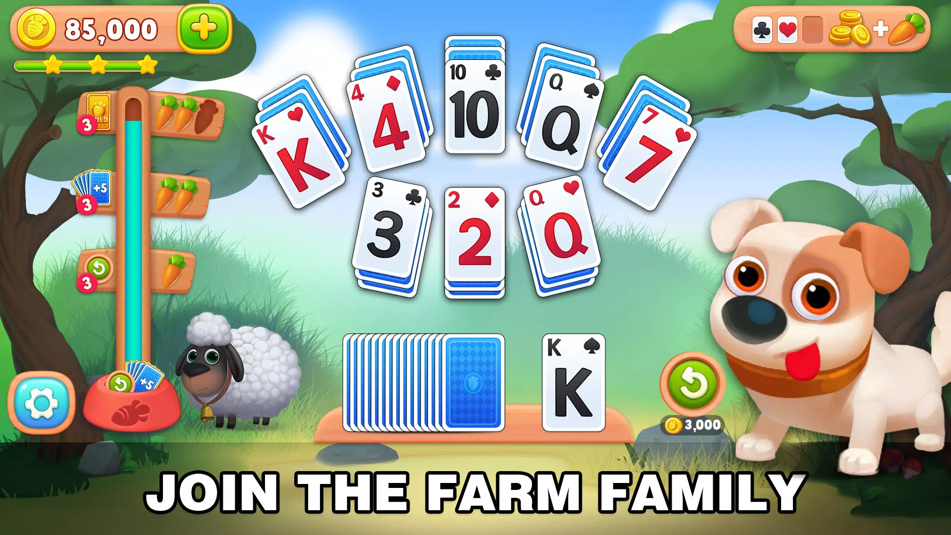 ✅ 完成关卡以获得星星。您获得的星星越多,您从纸牌农场获得的奖励就越多