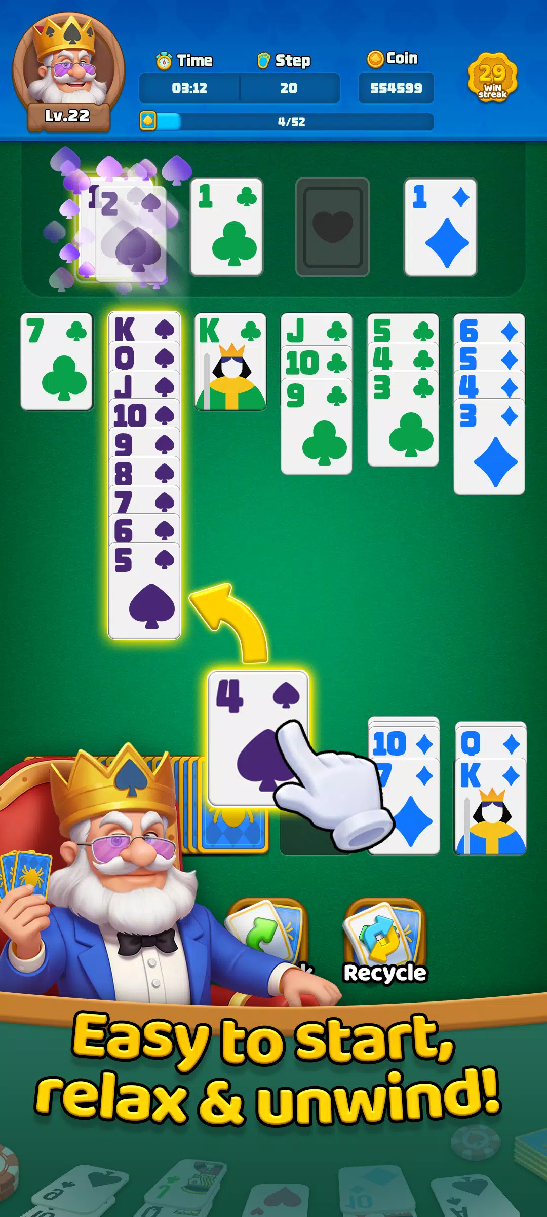 ● **经典玩法,原汁原味体验:** 完美复刻经典蜘蛛纸牌规则,提供三种难度级别——单花色、双花色和四花色——从休闲到烧脑,每一步都比上一步更加引人入胜。