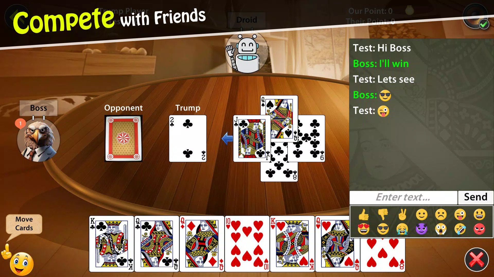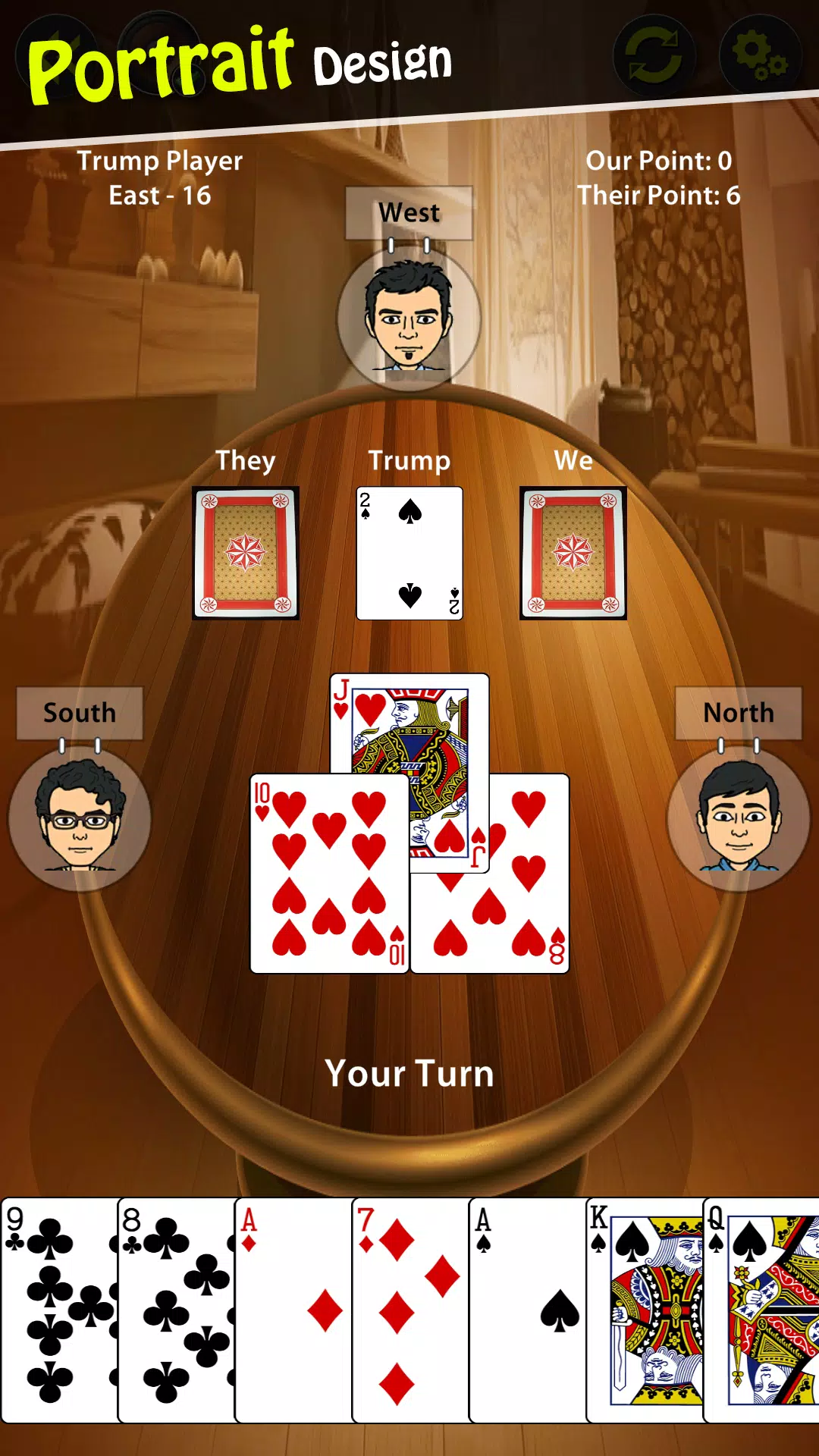 ❤️ 畅玩南亚最受欢迎的纸牌游戏之一,J 和 9 是其中最强大的牌。游戏使用标准牌堆中的 32 张牌进行游戏,并遵循以下独特排名:J > 9 > A > 10 > K > Q > 8 > 7。