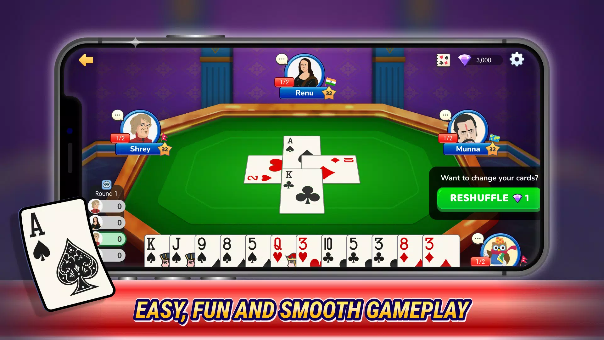 Bhoos 出品的 Callbreak 独特功能: