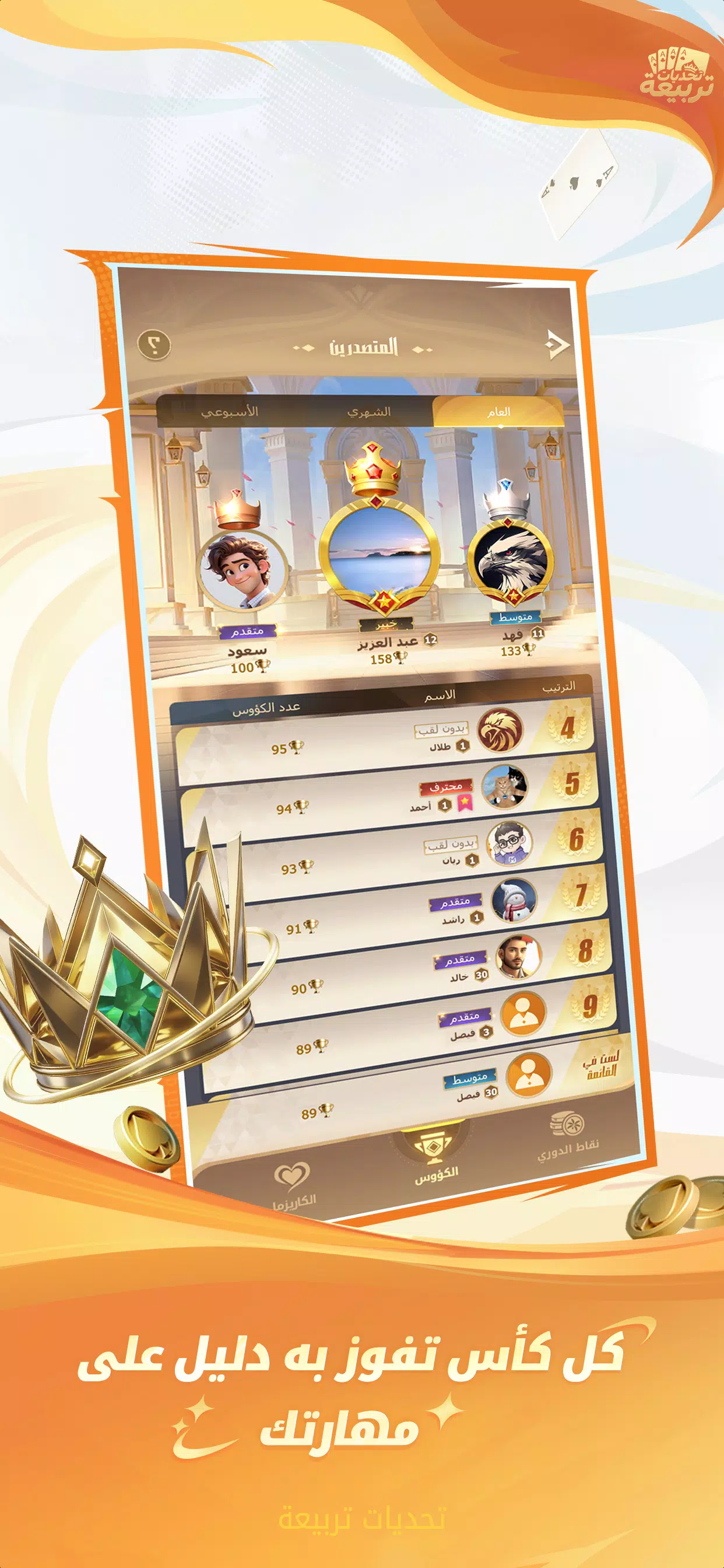 游戏主打持续不断的线上锦标赛,每日多场比赛不间断进行。无论你是新手还是职业选手,都能找到属于自己的竞技场,凭借精湛的技艺赢得荣誉和奖励。游戏秉持完全公平的原则,杜绝任何作弊行为。所有决策都基于策略和实力,为所有玩家带来激动人心的竞技体验。无需复杂的操作说明即可轻松上手。立即加入沙特阿拉伯的 Baloot 社区,下载游戏,展现你的牌技吧!