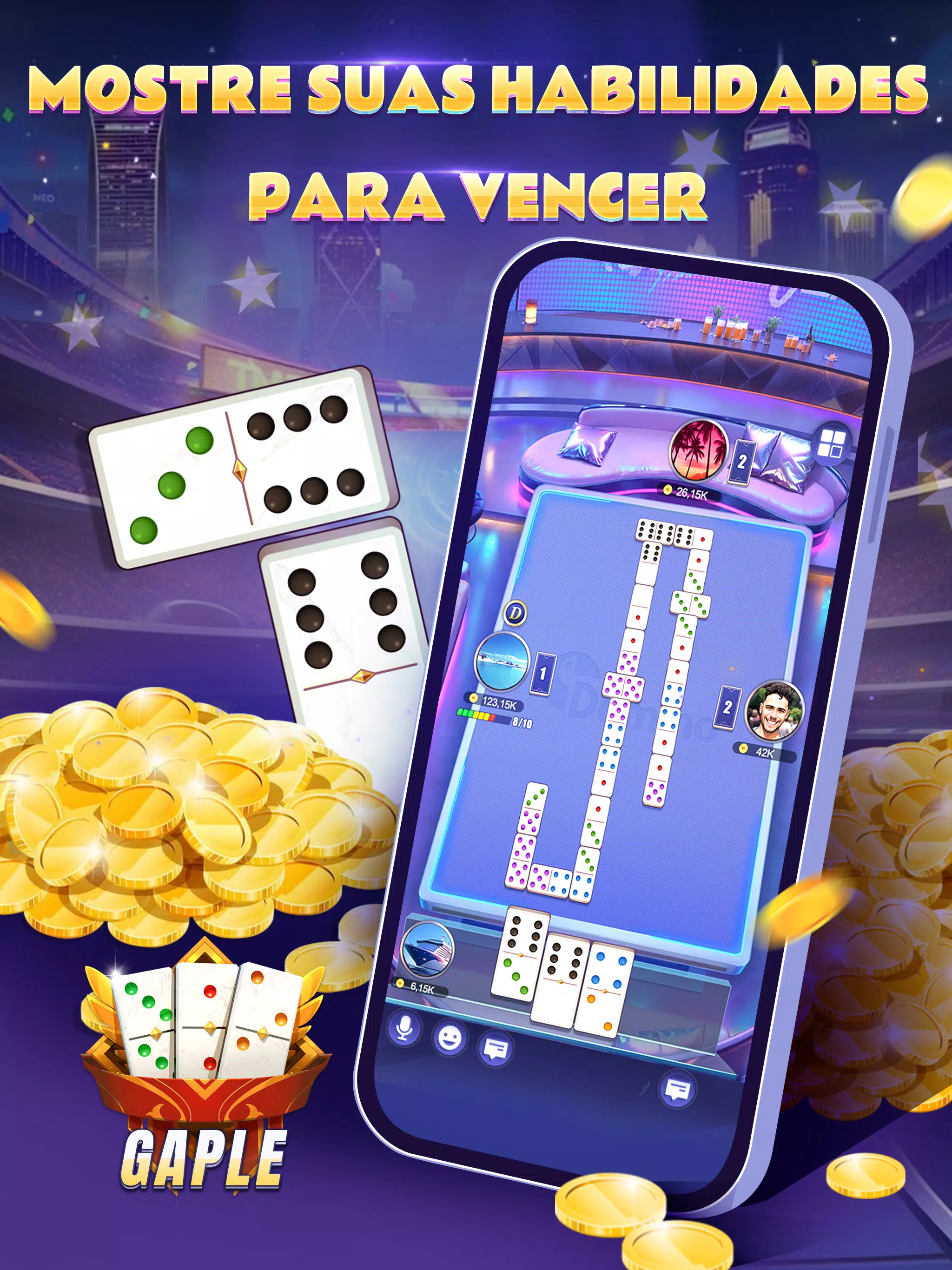 -Domino: Famoso jogo de tabuleiro no mundo também incluído aqui, mostrar sua habilidade de jogo.